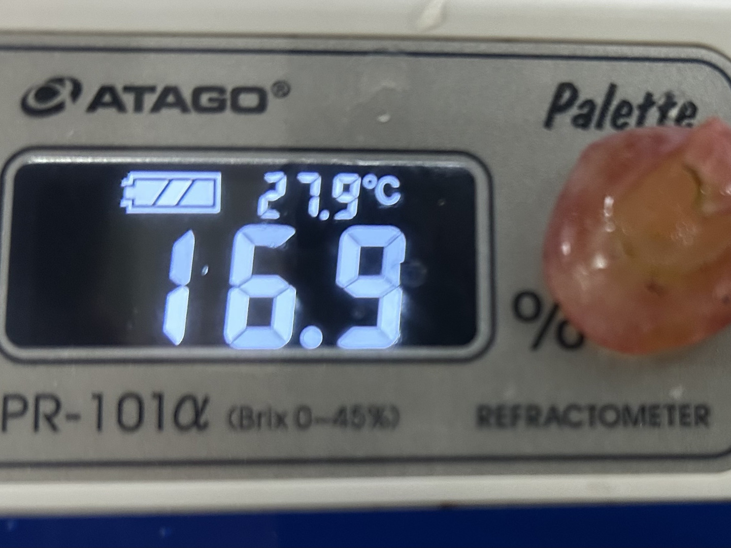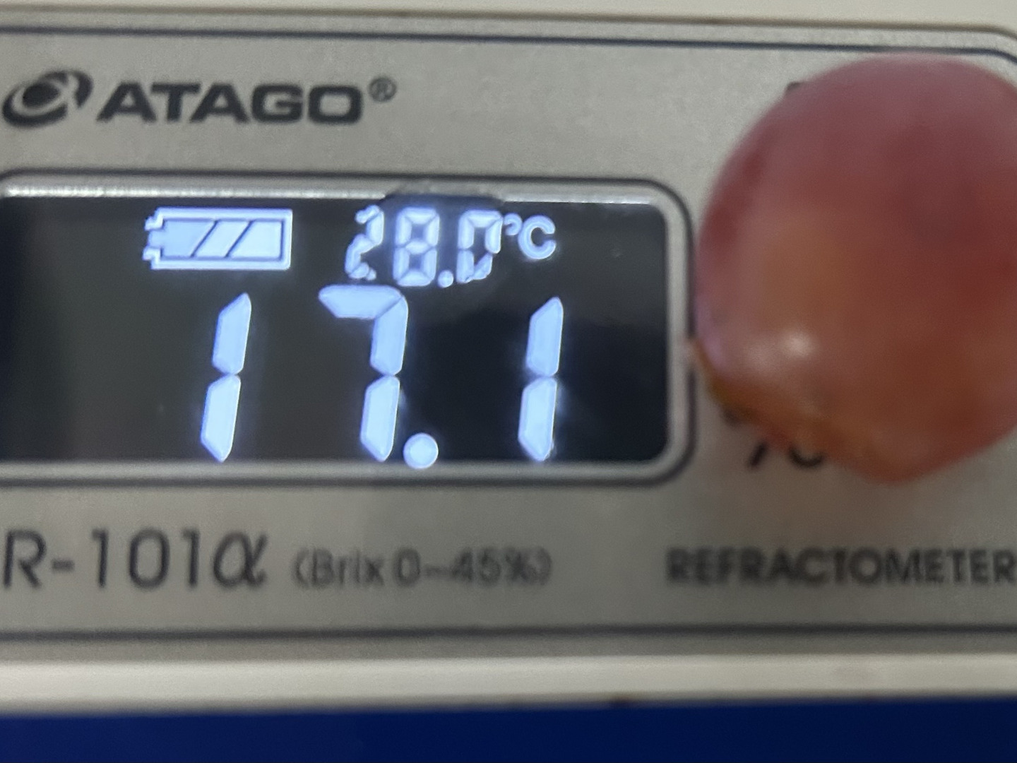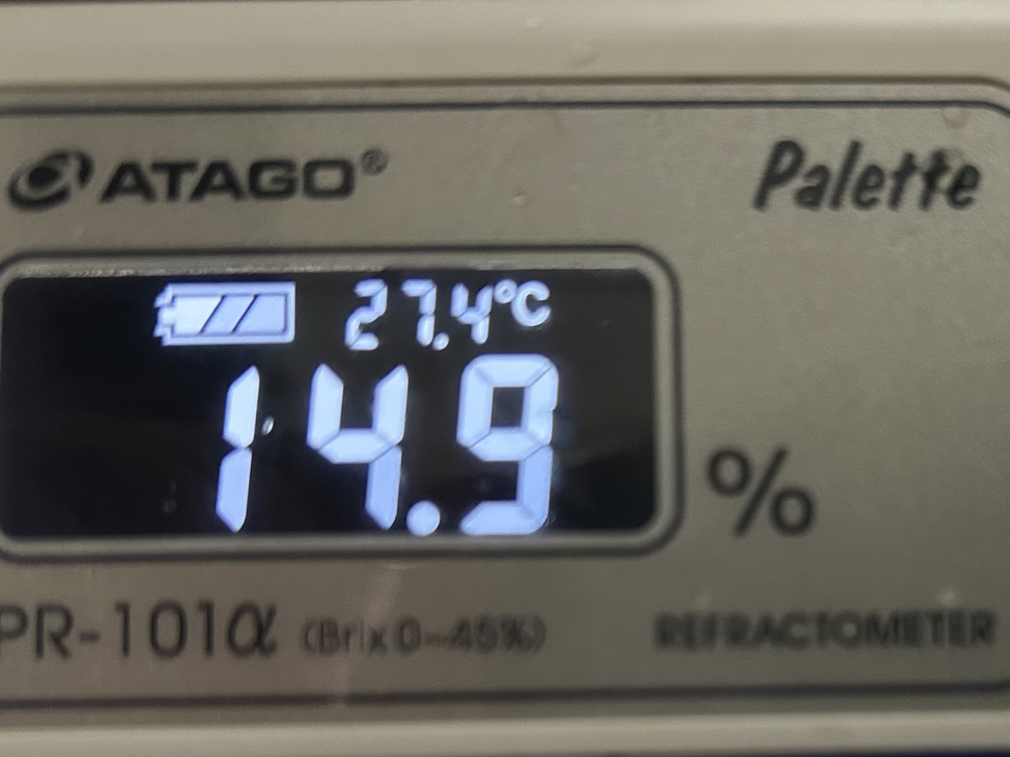 糖度計での糖度のサンブル検査と酸抜けと味見を行い糖度が規定値以上に成りましたので、22日より随時発送致します。