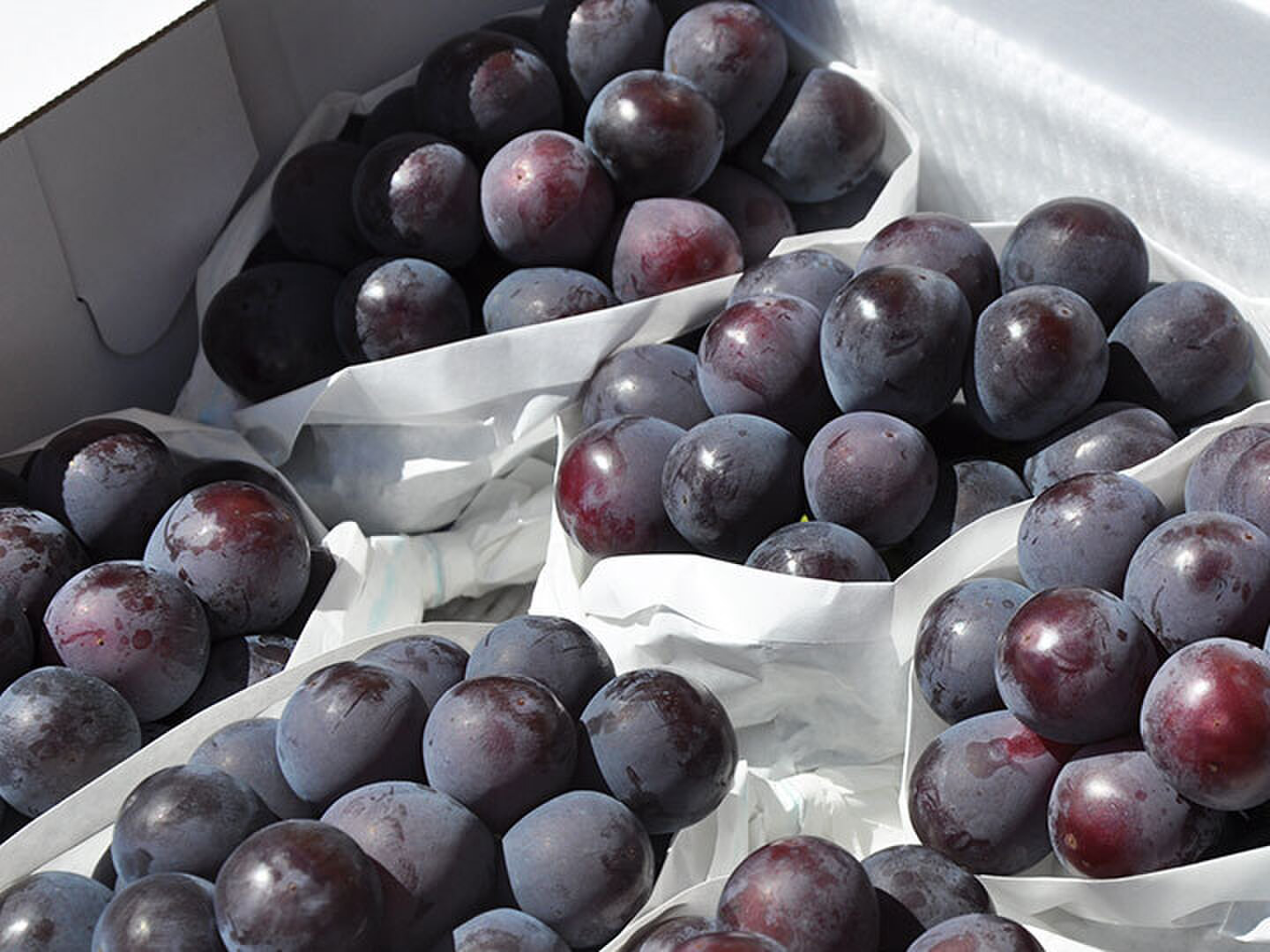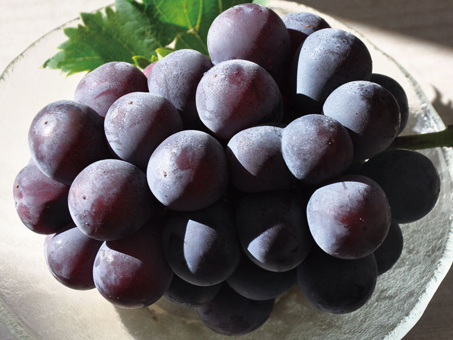ピオーネ:濃紫色の大粒ぶどうで、ジューシーで濃厚な甘みと程よい酸味がバランス良く感じられます。
