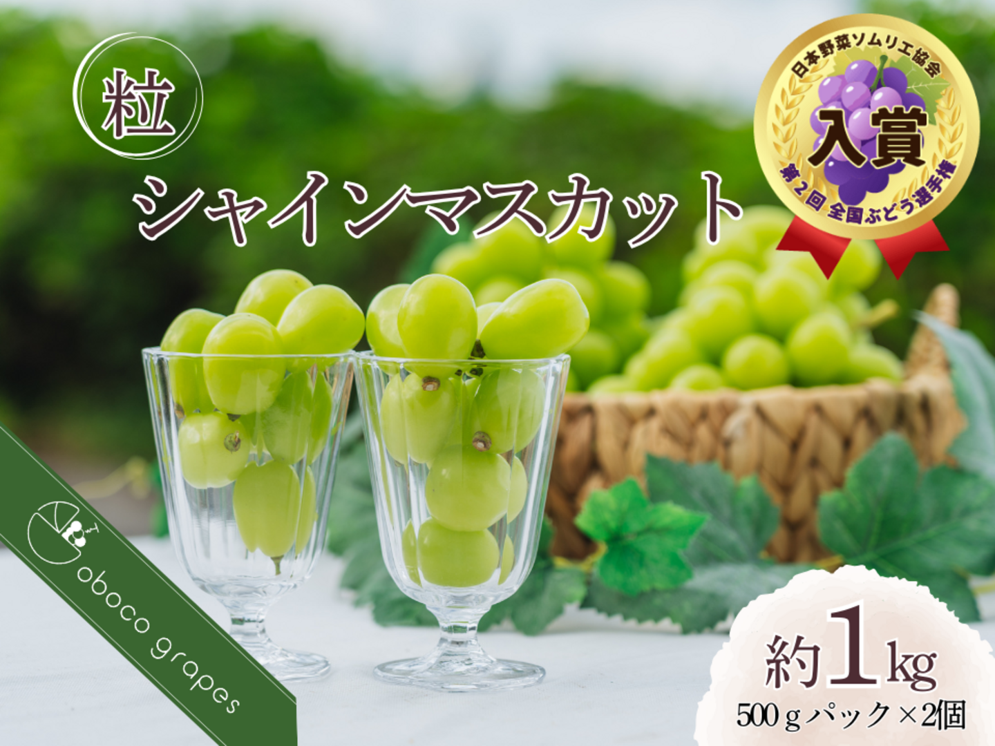 【粒売り】香り華やか贅沢『シャインマスカット』(2パック・合計約1kg)