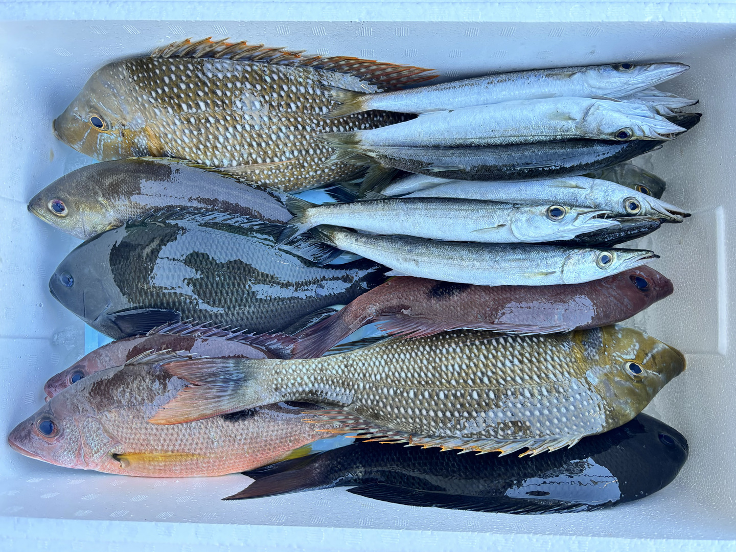 シオ、カマス、アジ、タルミ、アオリイカ、スマガツオ、その他色々な魚などその日獲れた物を即日発送致します!