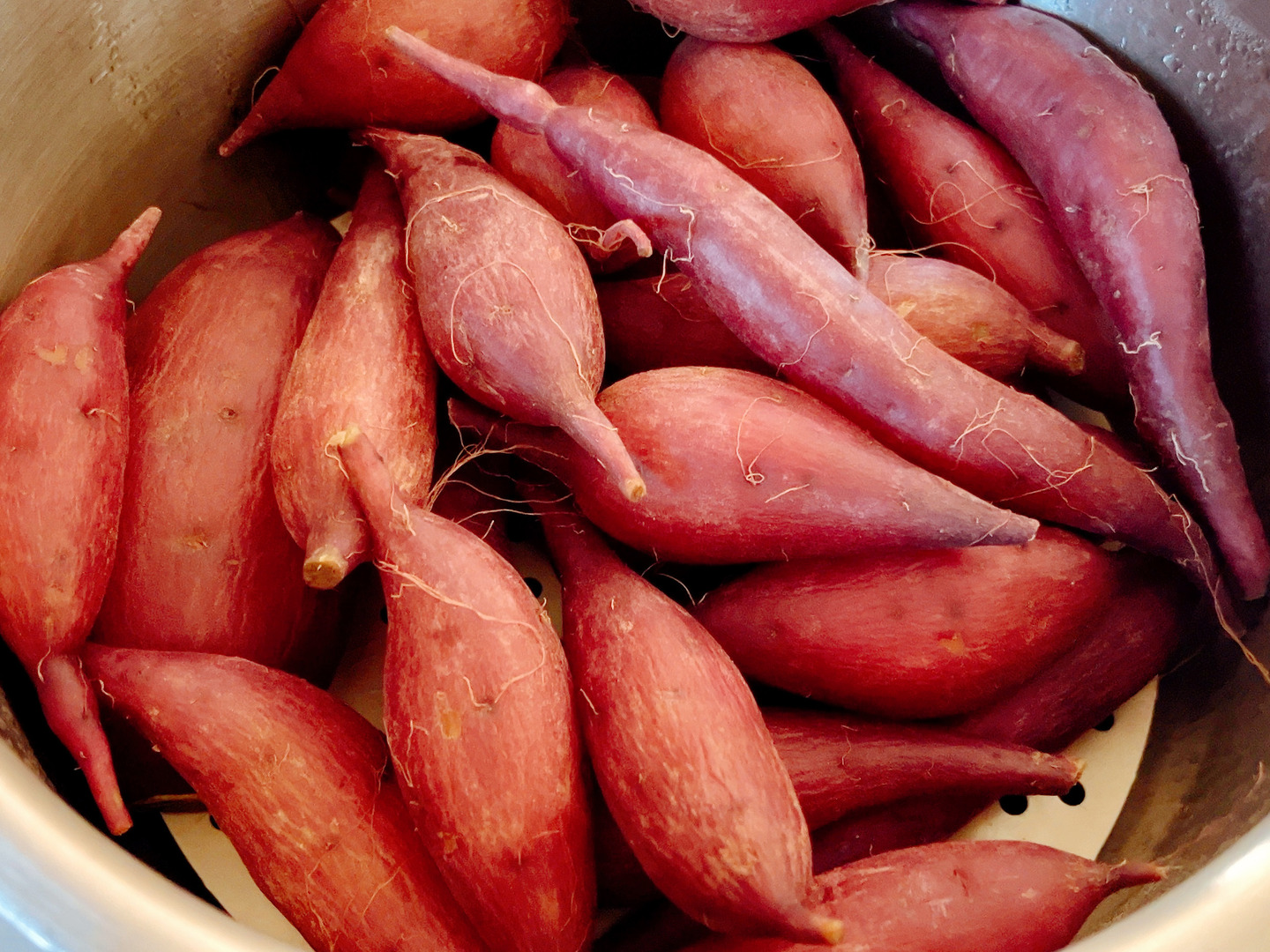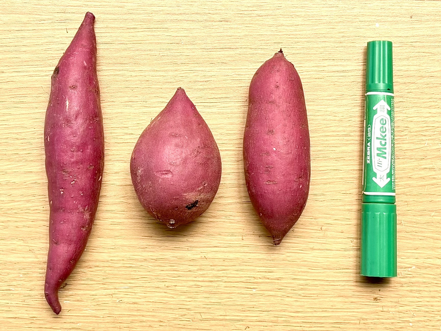 ※ 「ちびちびサイズ」は火の通りが早い事が利点ですが、電子レンジ等で短時間調理にすると、さつまいも特有のじっくりゆっくり熱を入れる事でデンプンが糖に変わる甘さを味わうには足りないかもしれません。お味見としてお試しください。