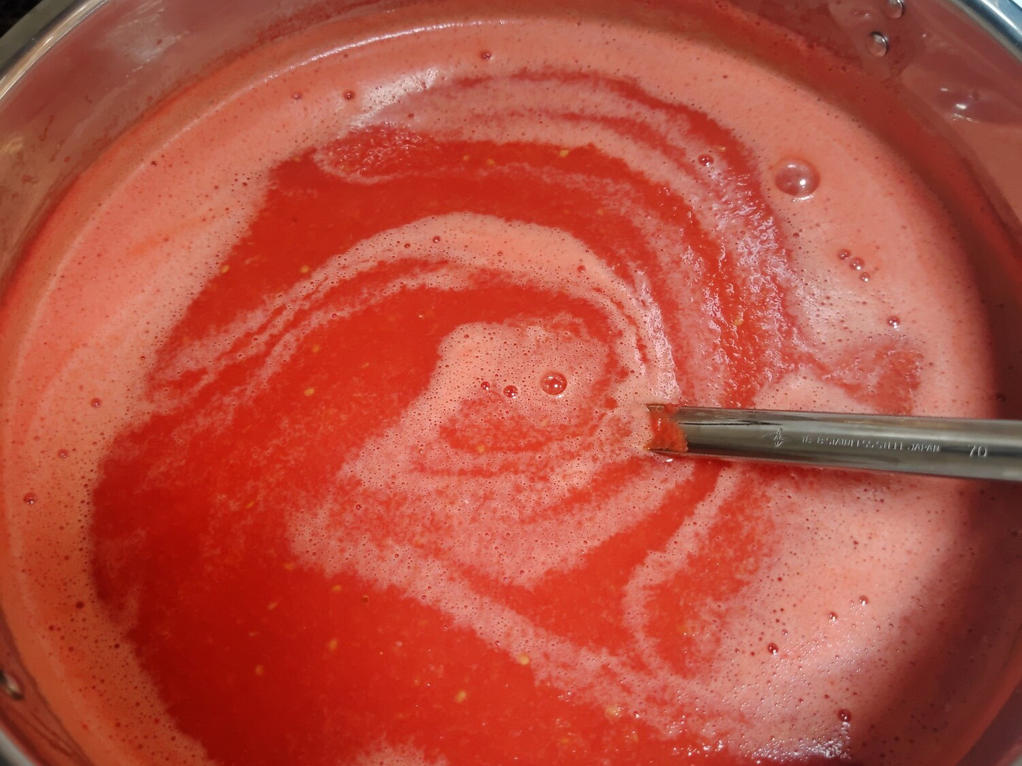 ジャムを作るのと同じように傷んだ部分や硬い部分、汚い皮は取り除いたらいいという寛容さとご理解が必要です。2番目の画像は自家用に痛みの大きいものを湯剥きして傷んだ部分を取り除いたものです。