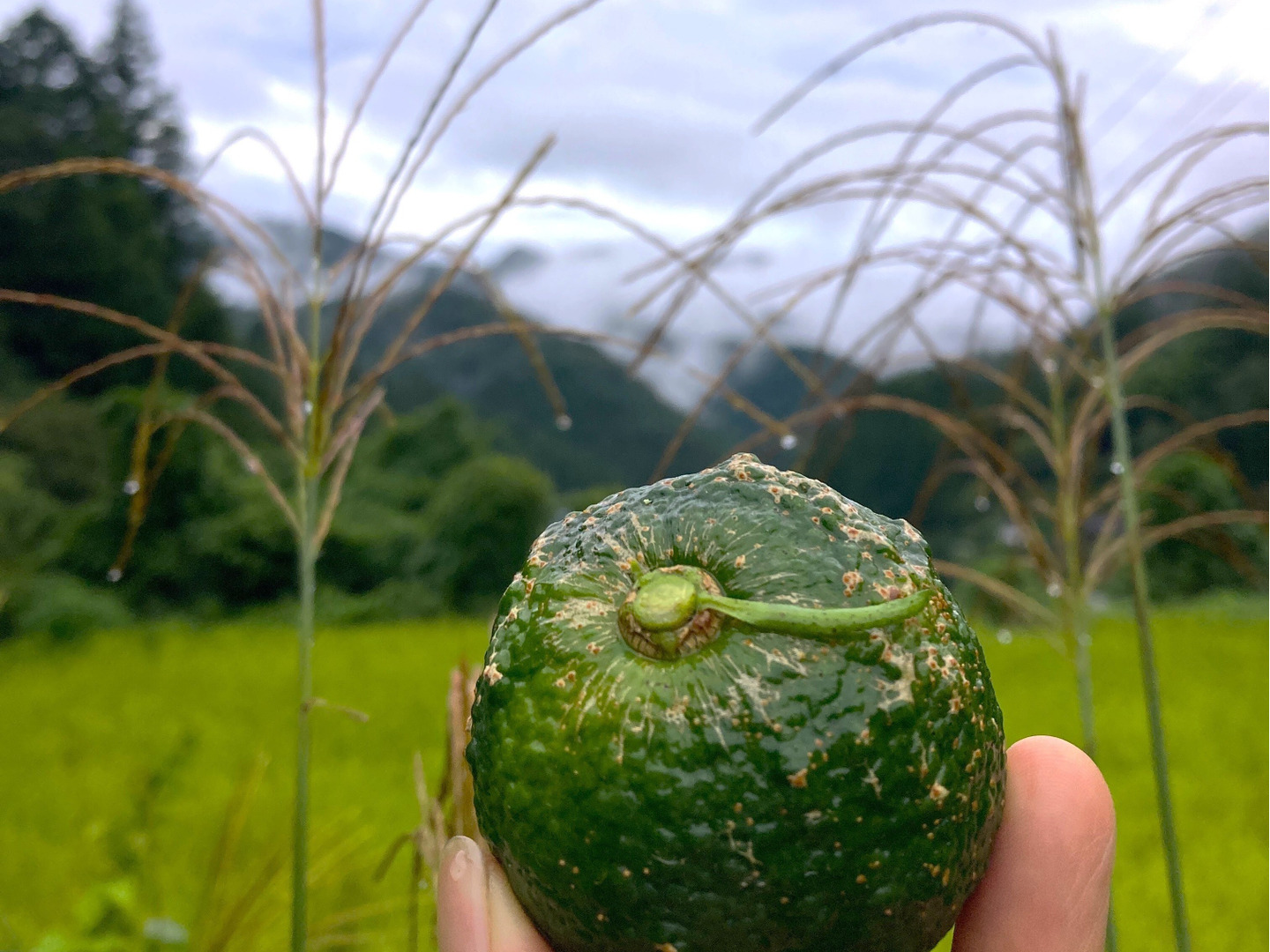 青ゆずは黄ゆずに比べて香りと酸味が強いのが特徴。そのため柚子胡椒などといった香辛料の加工に向いています。