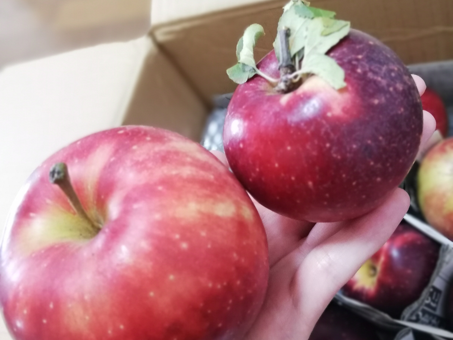 農薬を大幅に減らしているため、表面に赤い点々ができているりんごが殆どです。剥けばいつものりんごです。