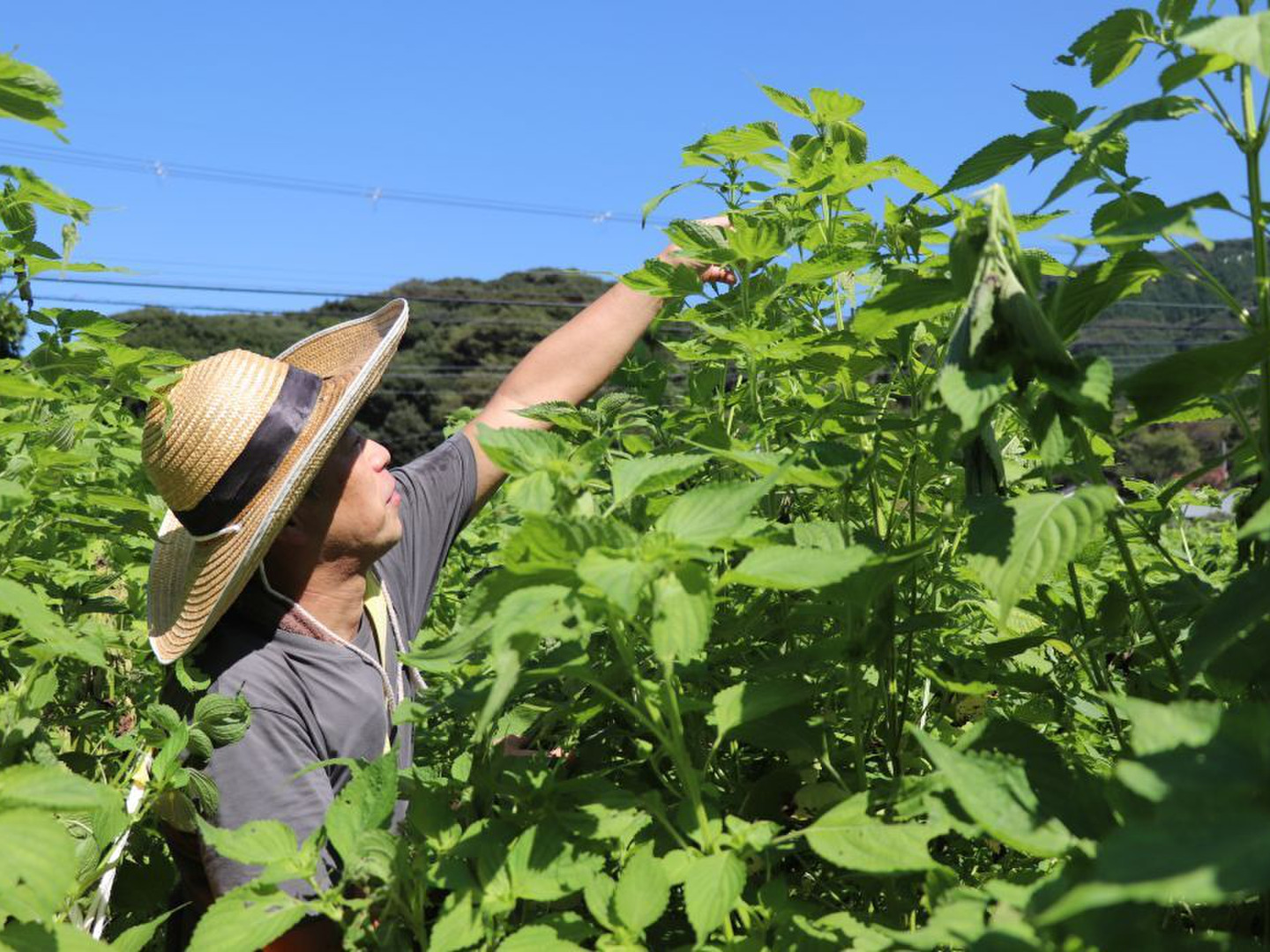 農薬・化学肥料を使わず育てたえごまの葉を、一枚一枚手作業で収穫・選別。