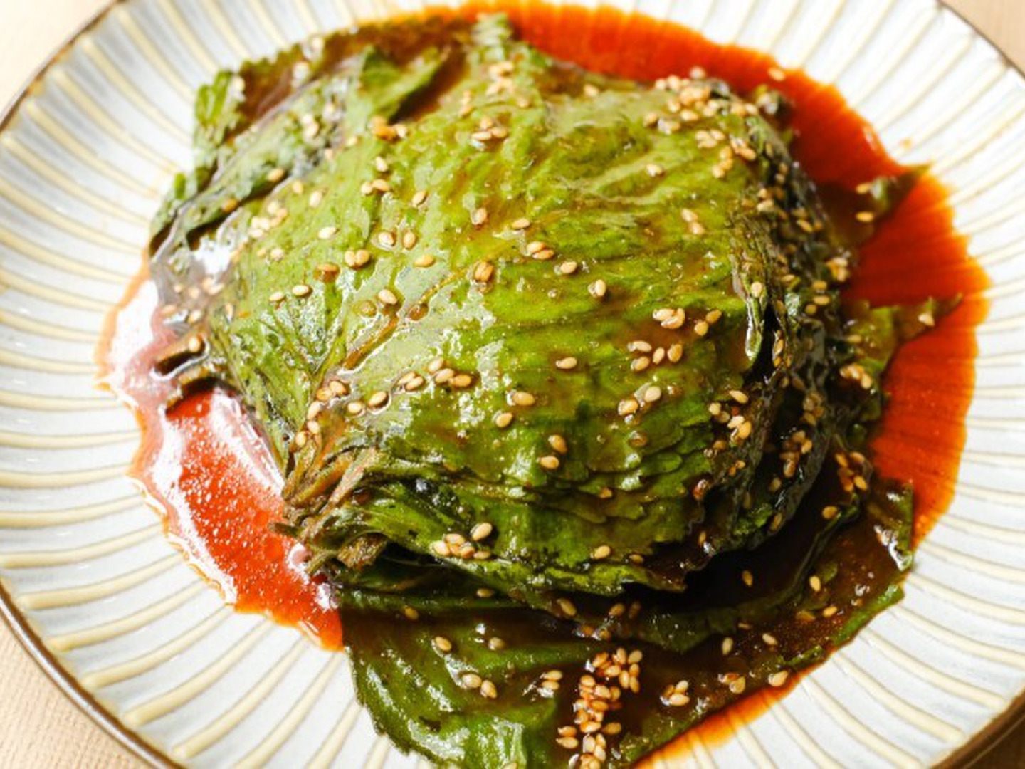 香ばしいえごまの葉を、秘伝の醤油だれでじっくり漬け込みました。