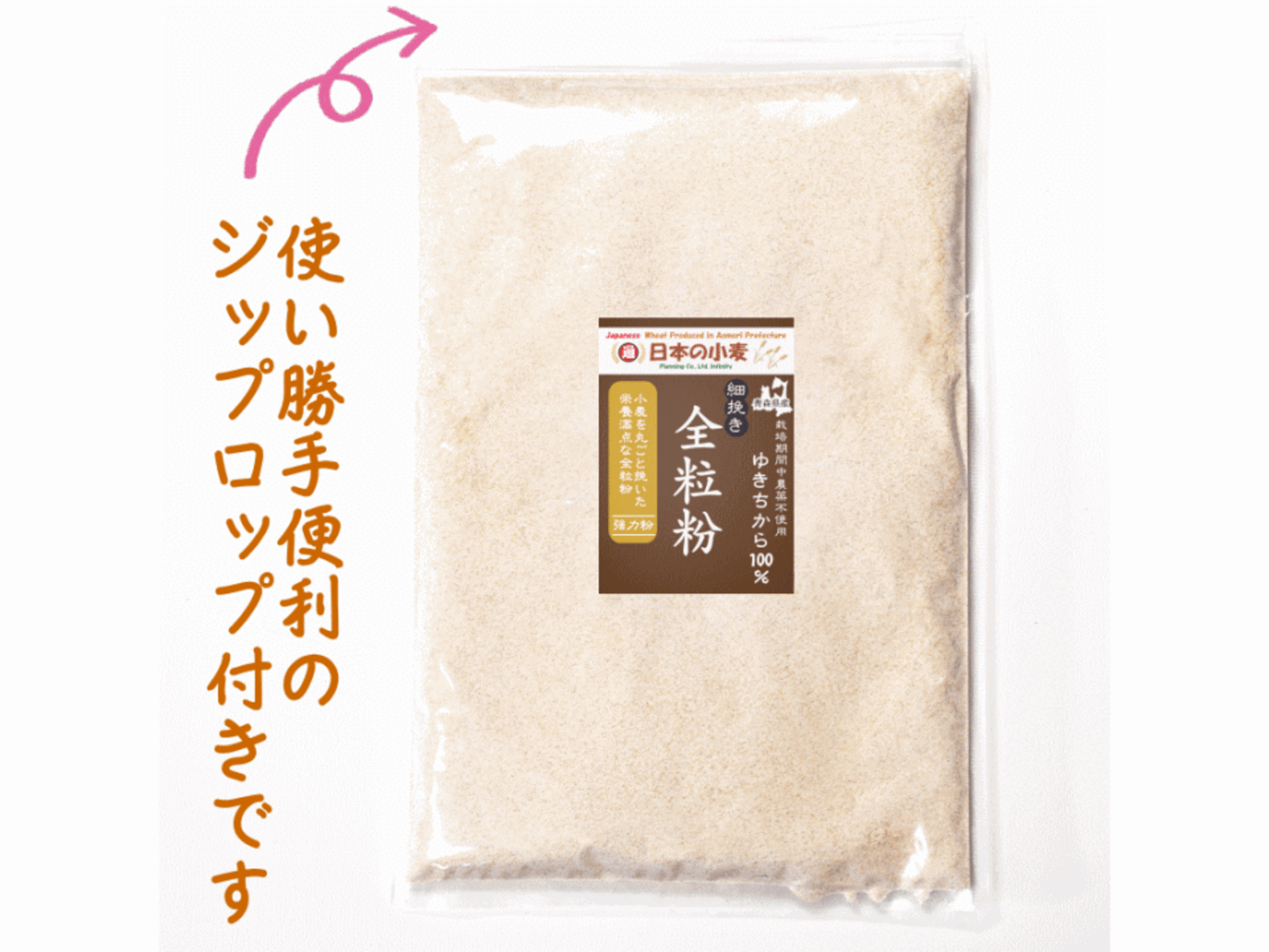 【栽培期間中農薬不散布】全粒粉 細挽き 400g 青森県産単一品100%使用 日本の小麦 「ゆきちから」メール便