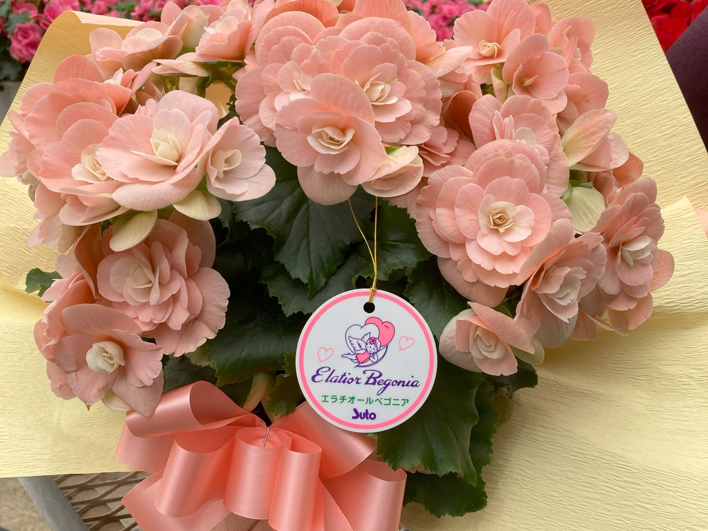 エラチオールベゴニア【ビノスソフトピンク】5寸は、まるで絵画のような美しさを持つ希少な品種です。華やかなピギーピンクの花びらが、どこか高級感を漂わせるハイセンスな一品。観賞用としてはもちろん、贈り物としても喜ばれること間違いなしです。