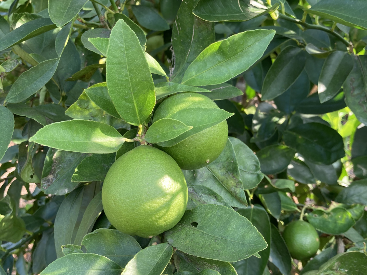 輸入ライムの果皮色はグリーンですが、当園のライムは11月ころからだんだんと黄色くなります。