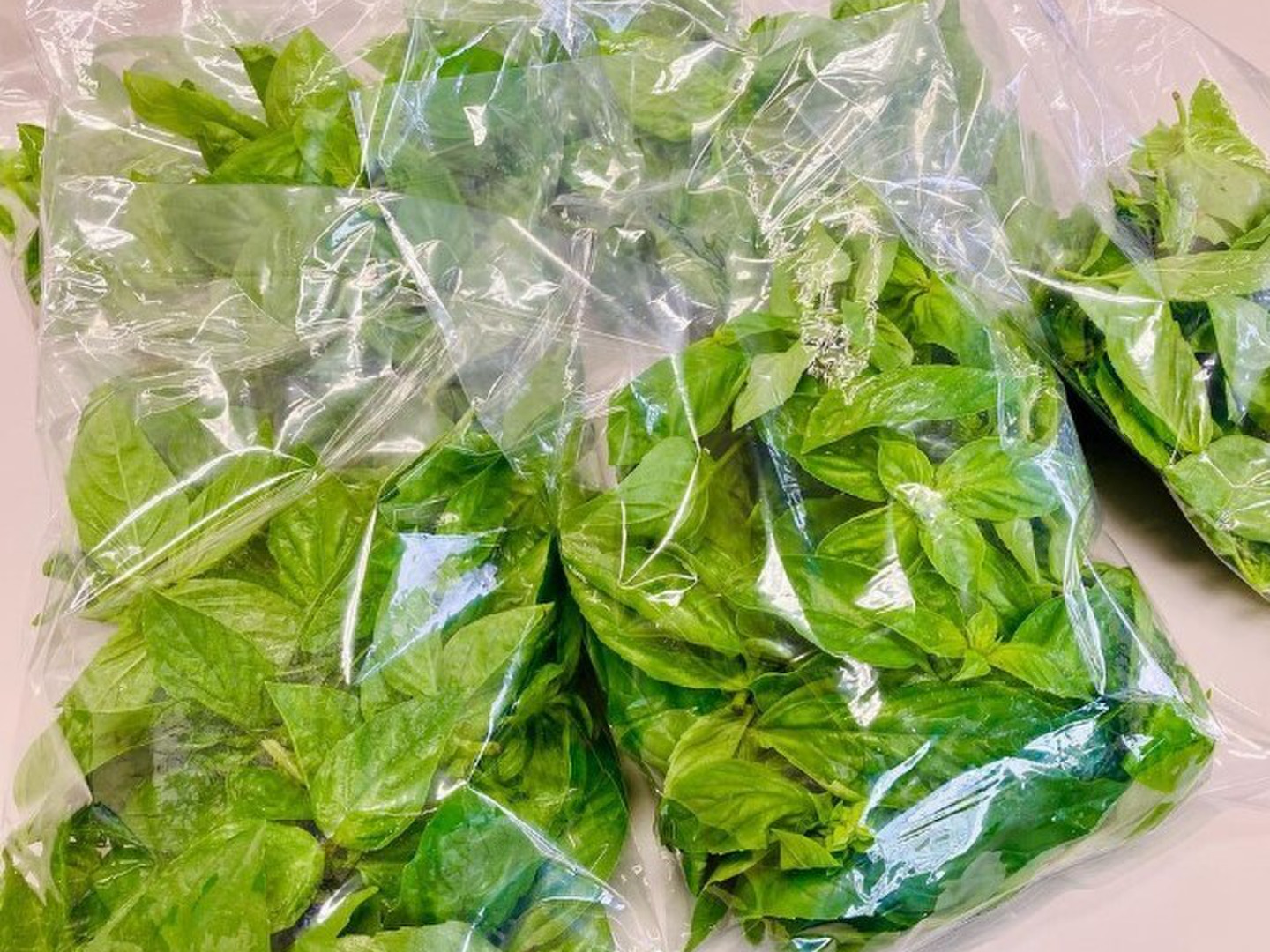 当農園のバジルは、香りがとても強く、袋に入れた状態で冷蔵保存しておくだけで、一週間以上長持ちします。