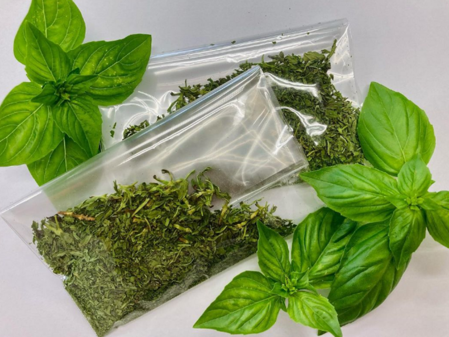 またレンジで乾燥させて(天日干しでもOKです)粉末状にすると、乾燥粉末バジルとして ひと月ほど保存が出来ます。