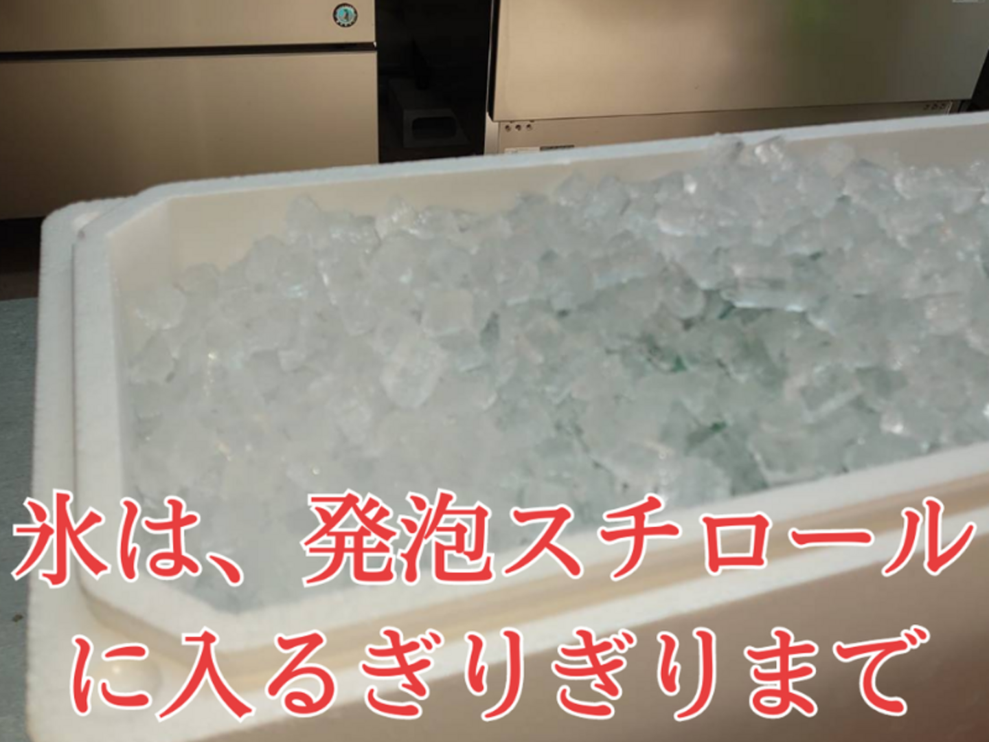 自動給餌機を使わず、手やりエサで大切に育てました。当日水揚げによる活締め&神経締め後、海水氷を活用して血抜きをしながら、中心温度5度以下まで下げたのち梱包します。