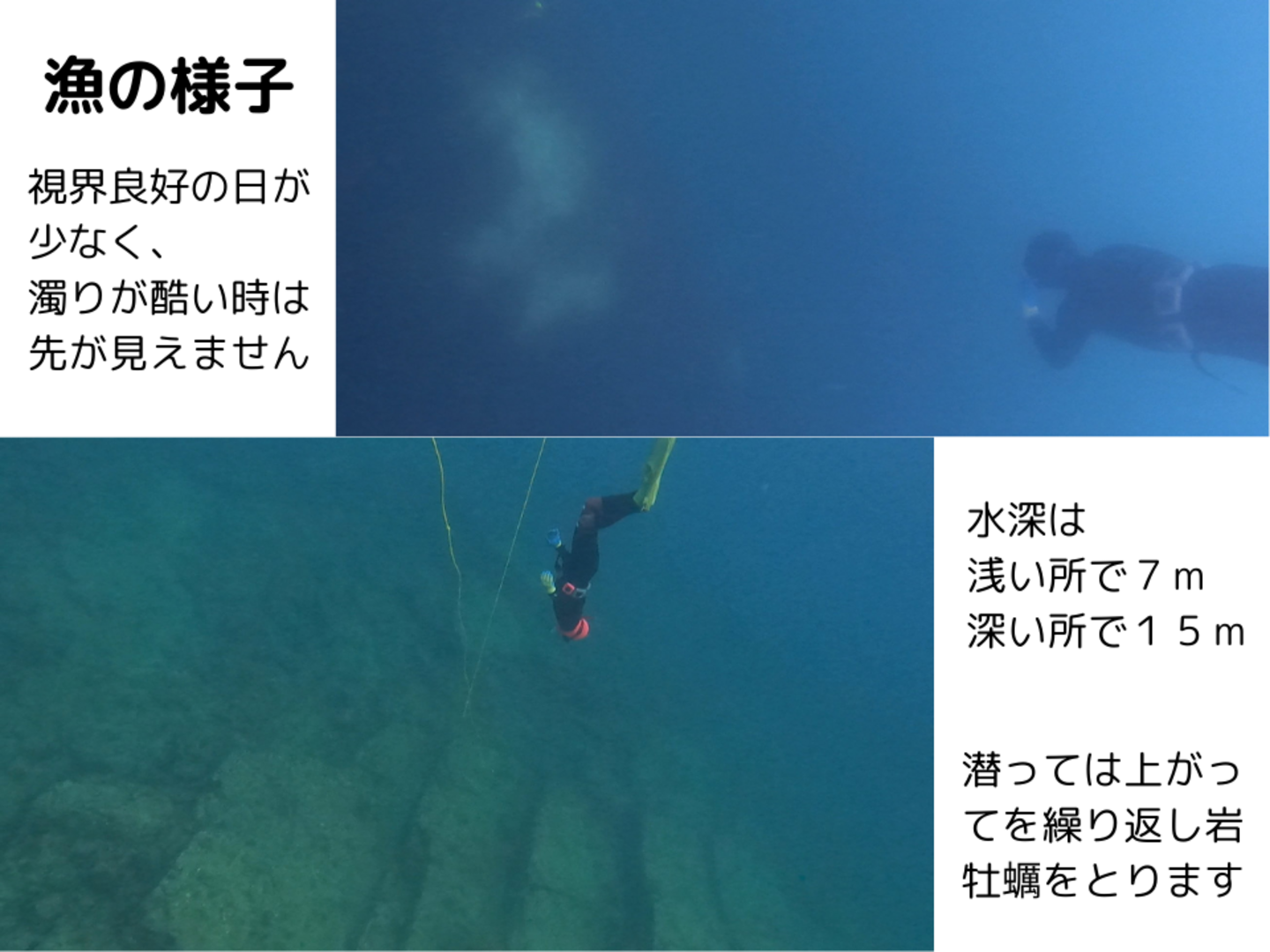 ヨコタ礁は、水深が深い、凪が少ない、潮の流れが速い場所です。だからこそ、ここで獲れる岩牡蠣の味は格別であり、他にはない味わいなのだと思います。