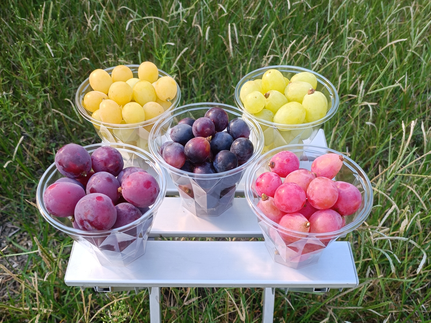晴れの国岡山で、日光をいっぱいに浴びて育った、ピオーネ、翠峰、マスカットベリーA、クイーンニーナ、若木の小粒の完熟シャインマスカットの、パック入り粒、詰め合わせ300g×5p(パック)ご家庭用になります。ご注文後、朝採りし、新鮮な状態でその日に産地直送にて、お送り致します。