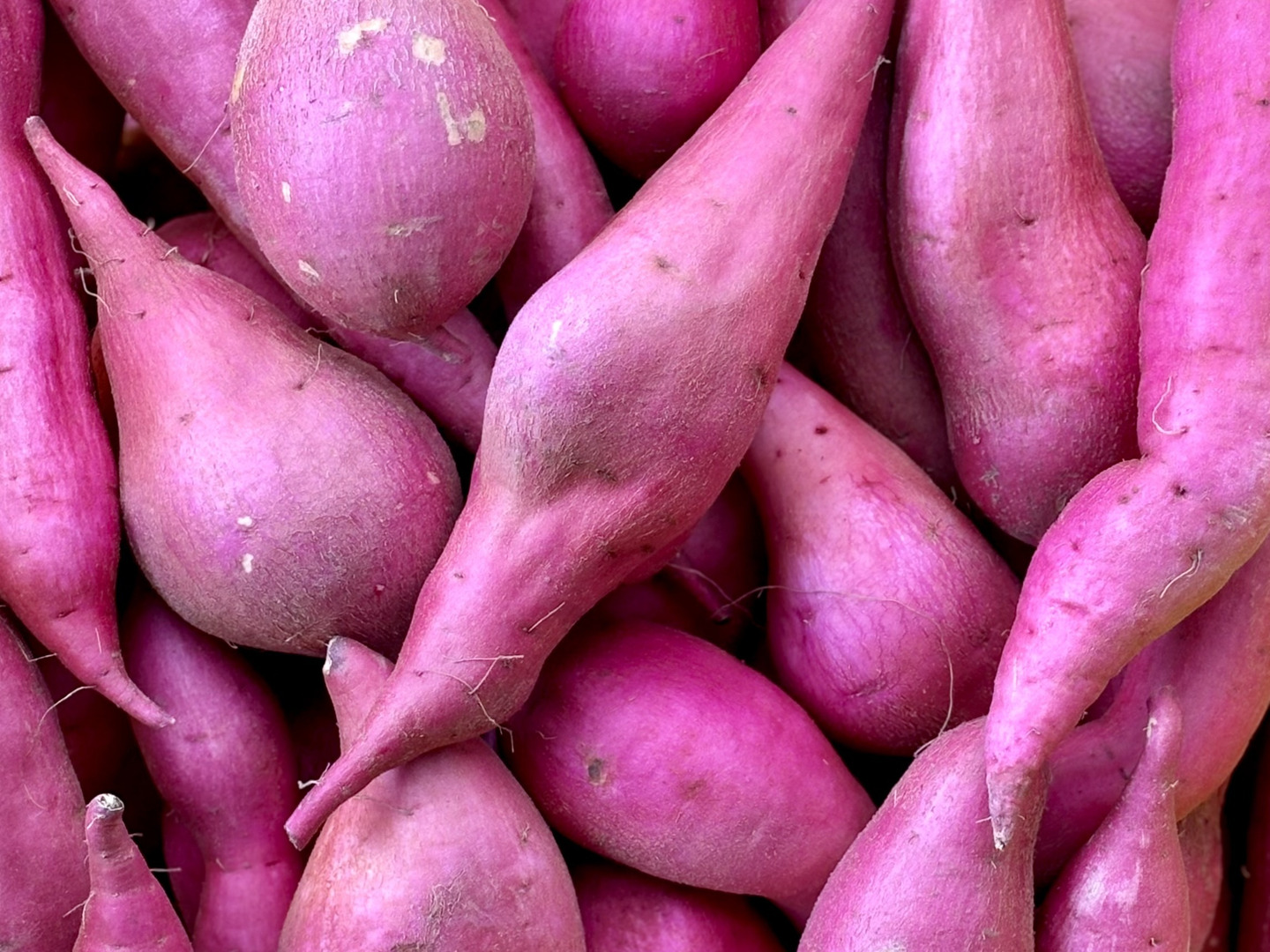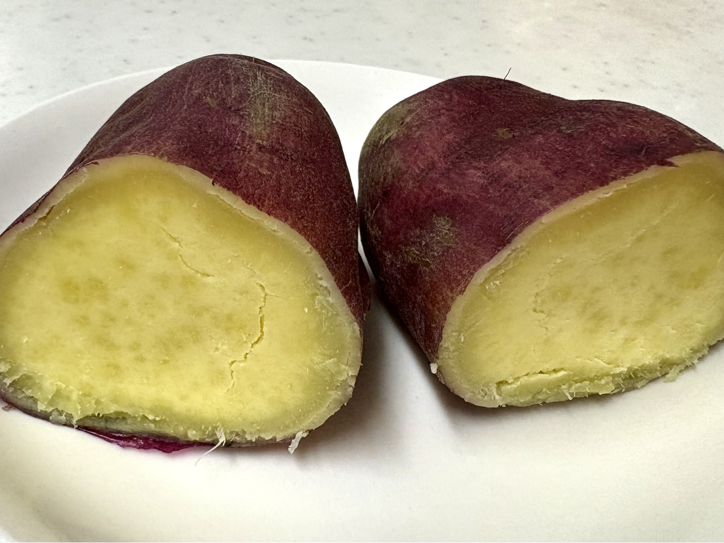 キラキラの新品種「ゆきこまち」は、ホクホク系ながらサラサラとした雪のような上品な口どけと、栗のような素朴な甘さが特徴です。加熱前の果肉の色は淡いクリーム色で、まさに色白肌の小町を連想させます。加熱後の黒変色が少ないので、天ぷらやスイートポテトなどのお料理やお菓子作りにも適しています。