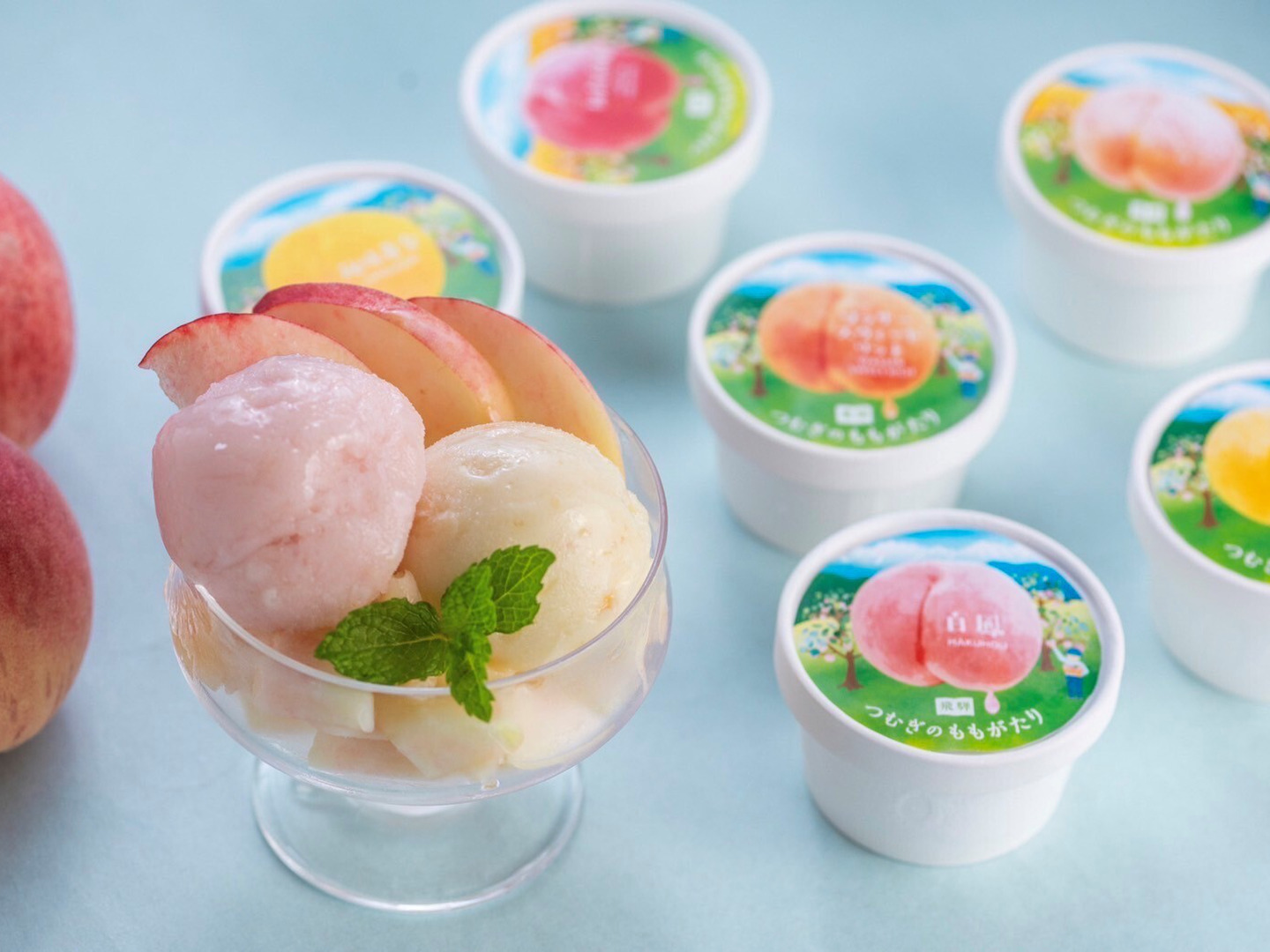 つむぎ果樹園で収穫した桃を、ジェラートにしました。