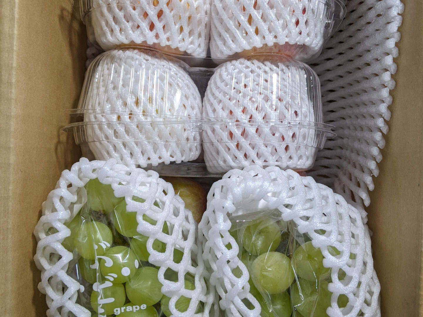 内容 桃1.3kg、スモモ1.7kg、ブドウ800gの詰め合わせです。 品種はきららのきわみ、秋姫、シャインマスカットです。