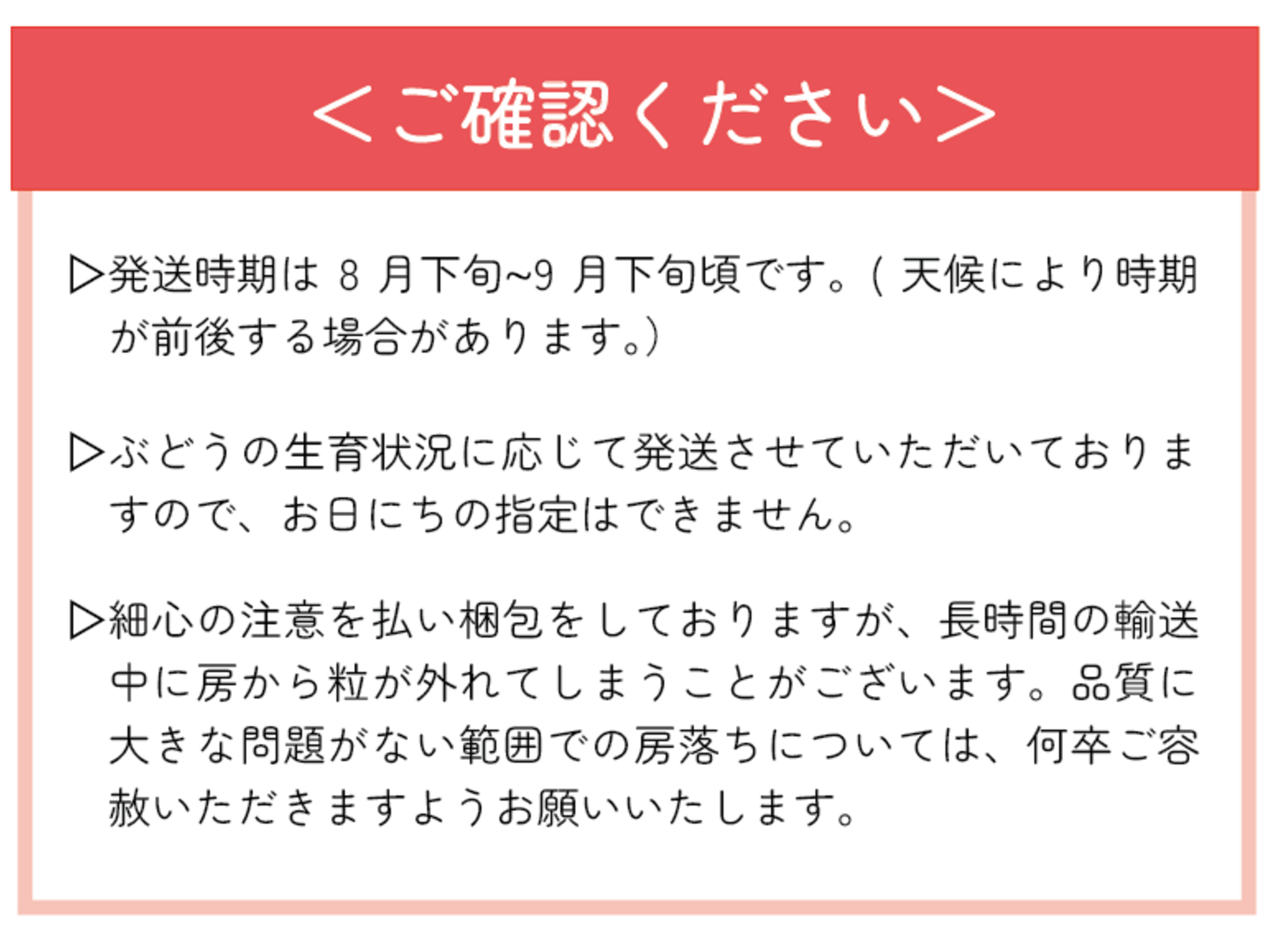 ・ぶどうの生育状況、天候によってお届けまでにお時間をいただく場合がございます。