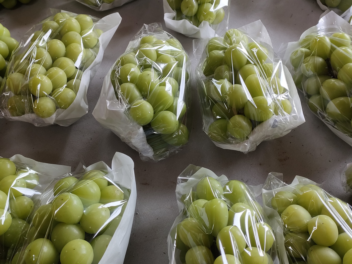 - 樹上完熟シャインマスカットは、爽やかさと甘さが抜群です。