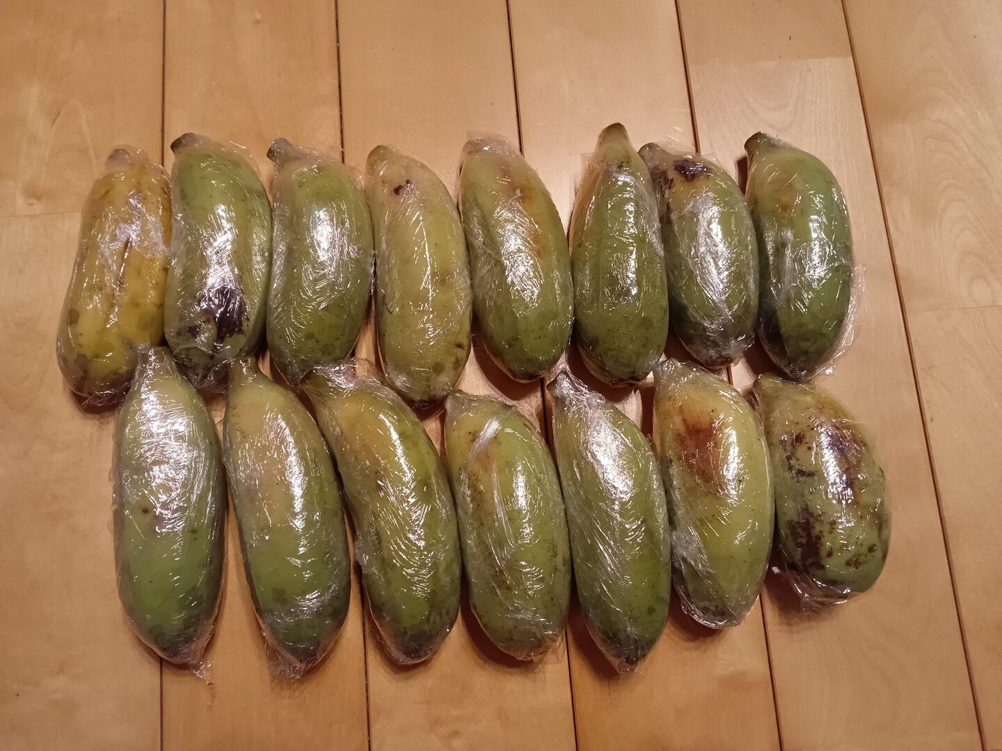 室温で追熟させてシュガースポットが出始めたら1本づつ新聞紙で包んで野菜室で保存してください。