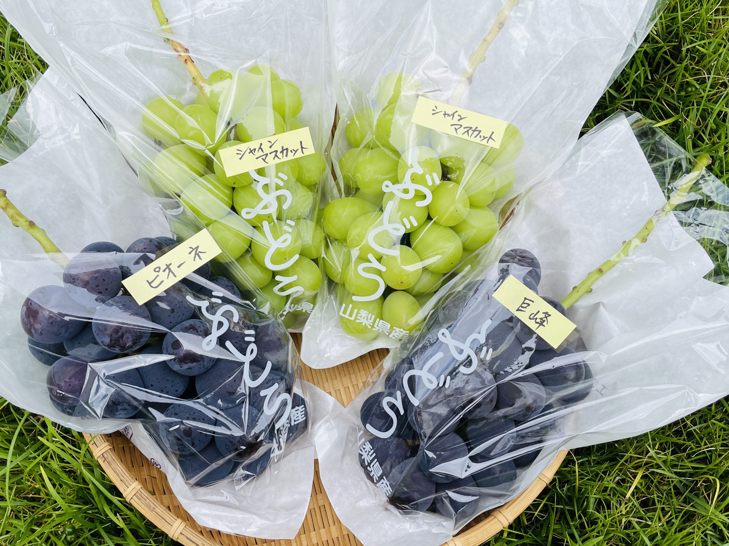 巨峰1房、ピオーネ1房、シャインマスカット2房
