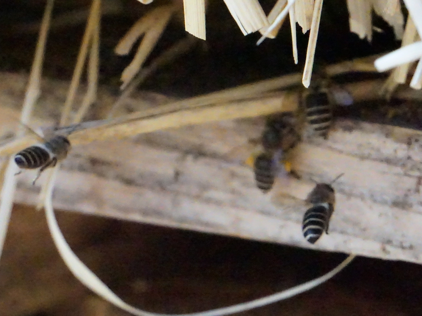 家畜的に飼育されているセイヨウミツバチと比べると小柄で,採蜜できる量も4~5分の1程度です。