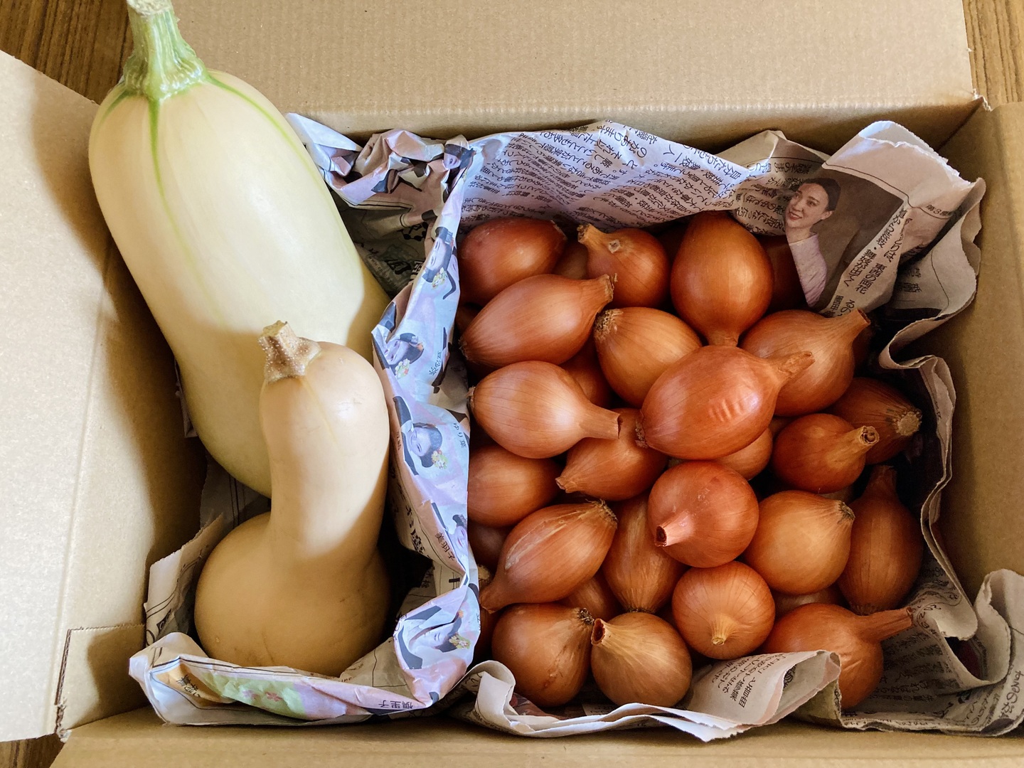 バターナッツ約800gと小ぶり玉ねぎ約1キロのセットです。