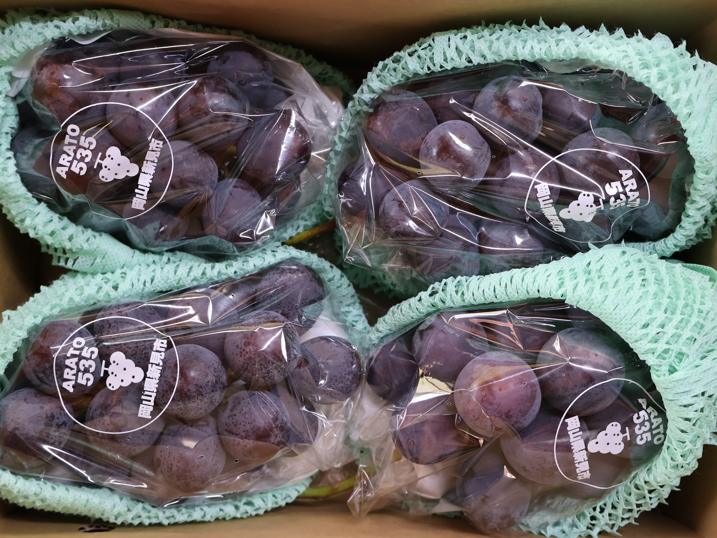 岡山県新見市産 標高が高い畑で作った!大粒!味が濃い!果汁たっぶり!ニューピオーネ 3~4房(1.8kg以上)×2箱