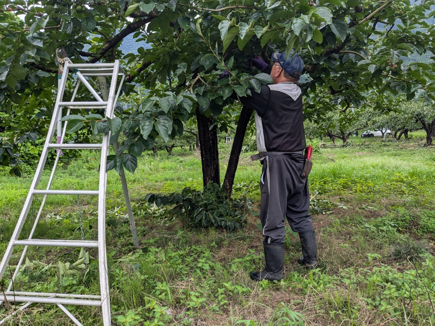 群馬県では旧勢多群東村(現みどり市)が昭和60年に、「東村柿の里づくり」を目指して地域特産試験ほ場の整備や苗木を配布し、東柿生産組合での柿づくりが本格化しました。そして現在も柿生産の安定化に取り組み、総員18名で上質な柿をつくるため剪定、摘果、草刈りなど手間暇かけて育てています。