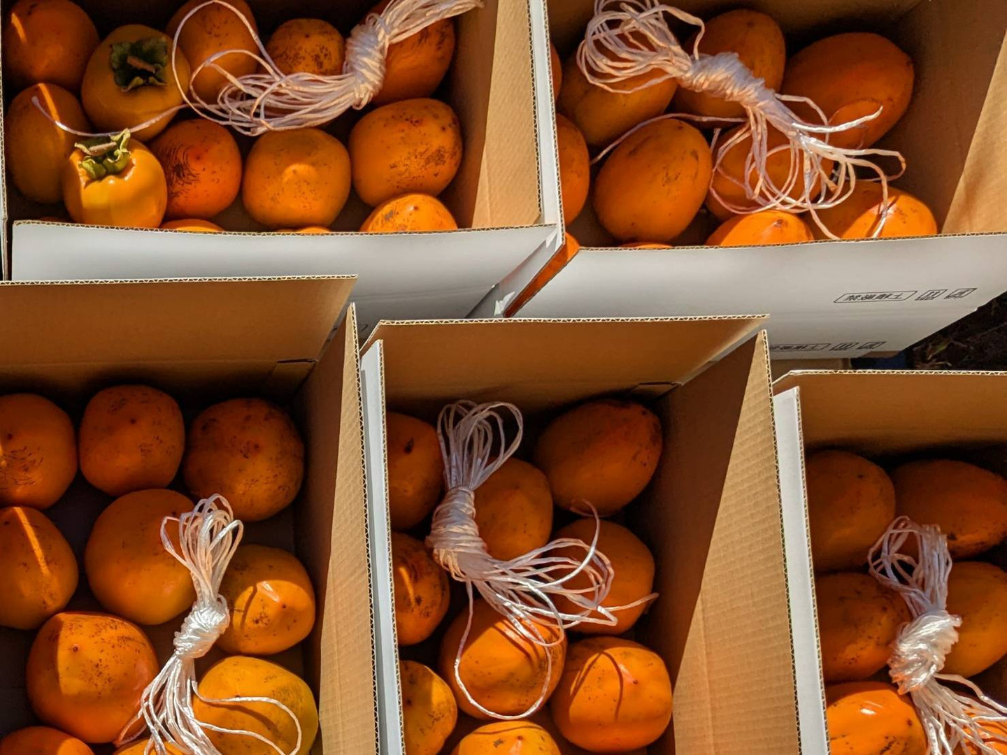 私たちは群馬県のみどり市東町の山に囲まれた土地で柿を栽培しております。圃場は約1町歩あり、風も通り日当たりもよく果樹栽培に適しており、毎年4~6トンもの柿が収穫できます。