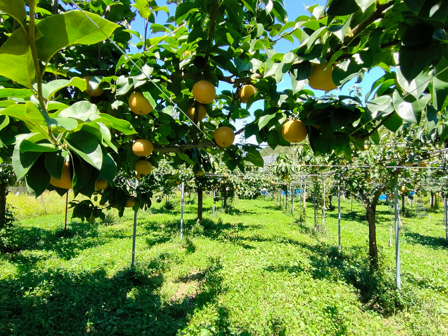 最低限の肥料で、植物の力を活かした仕立て方、栽培方法を目指しています。太陽の光が、葉や果実にいっぱいそそぐように枝の配置やいらない葉の整理をしています。