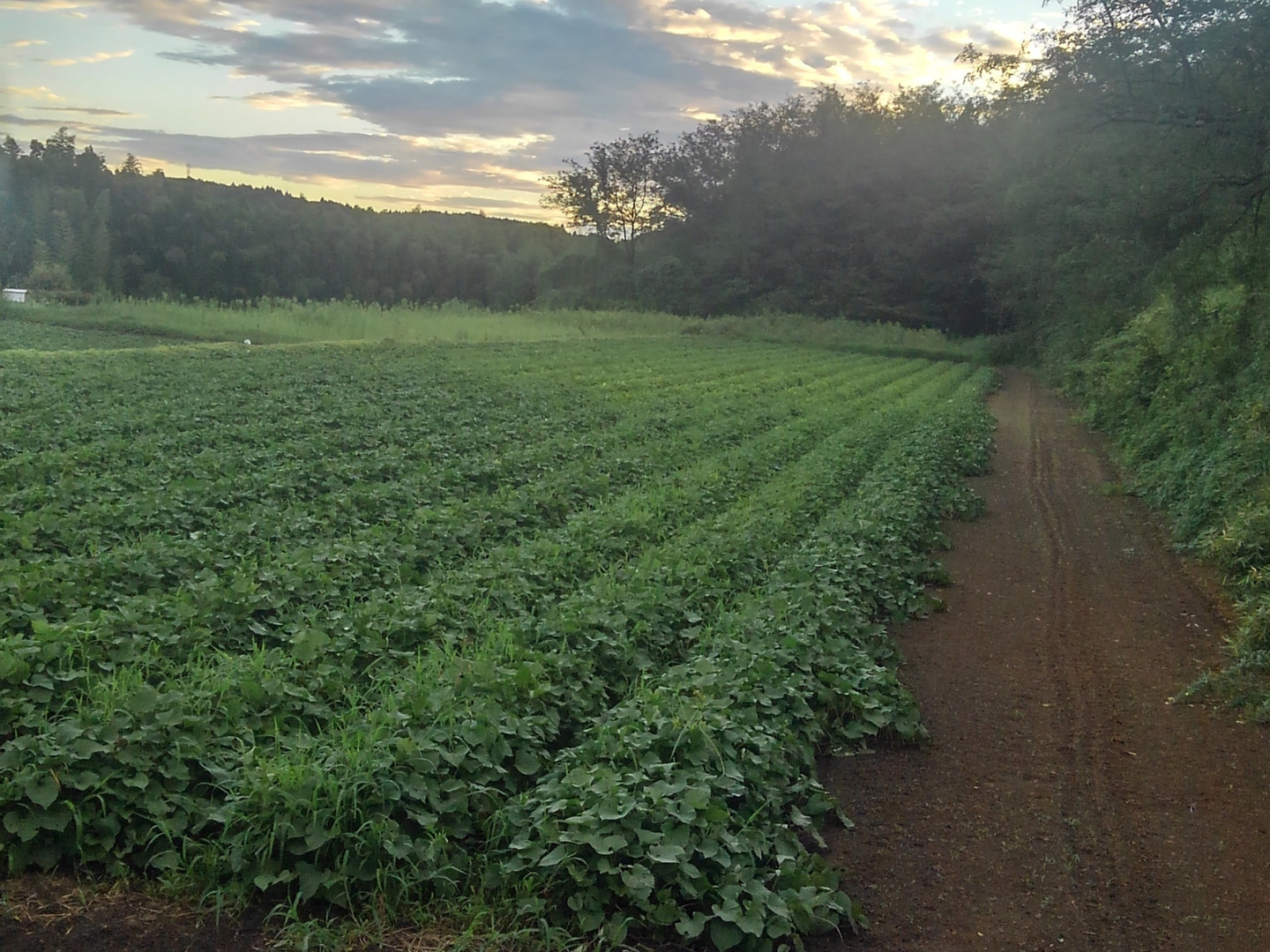 サツマイモに向く水はけの良い赤土の丘陵地で栽培しています。