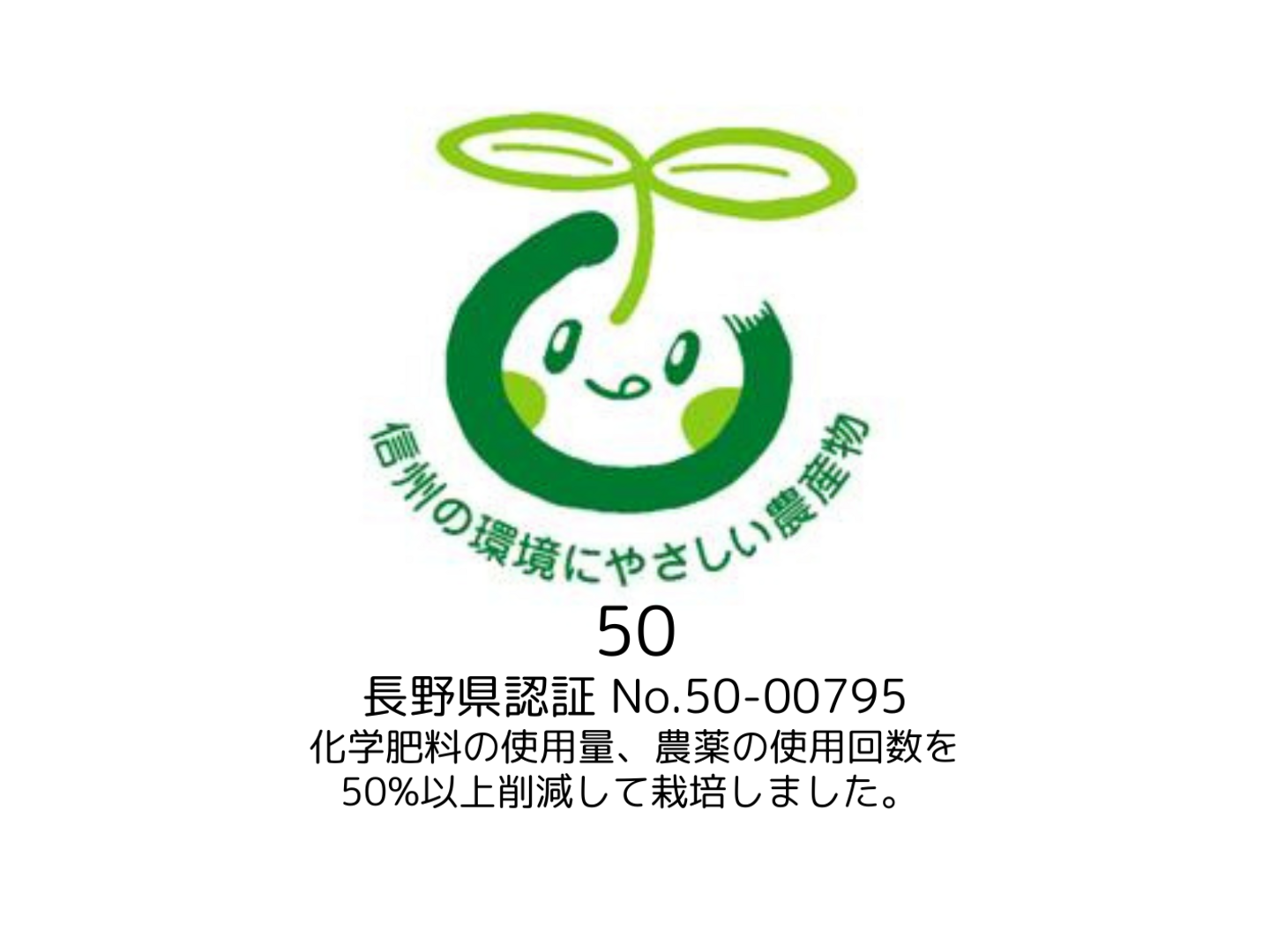 ★当園では地域の一般的な栽培方法と比較して化学合成農薬を50%以上削減、除草剤不使用、化学肥料不使用、有機肥料のみを使用して信州の環境にやさしい農産物認証を取得して人にやさしいだけでなく環境にもやさしい栽培に取り組んでいます。