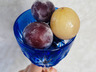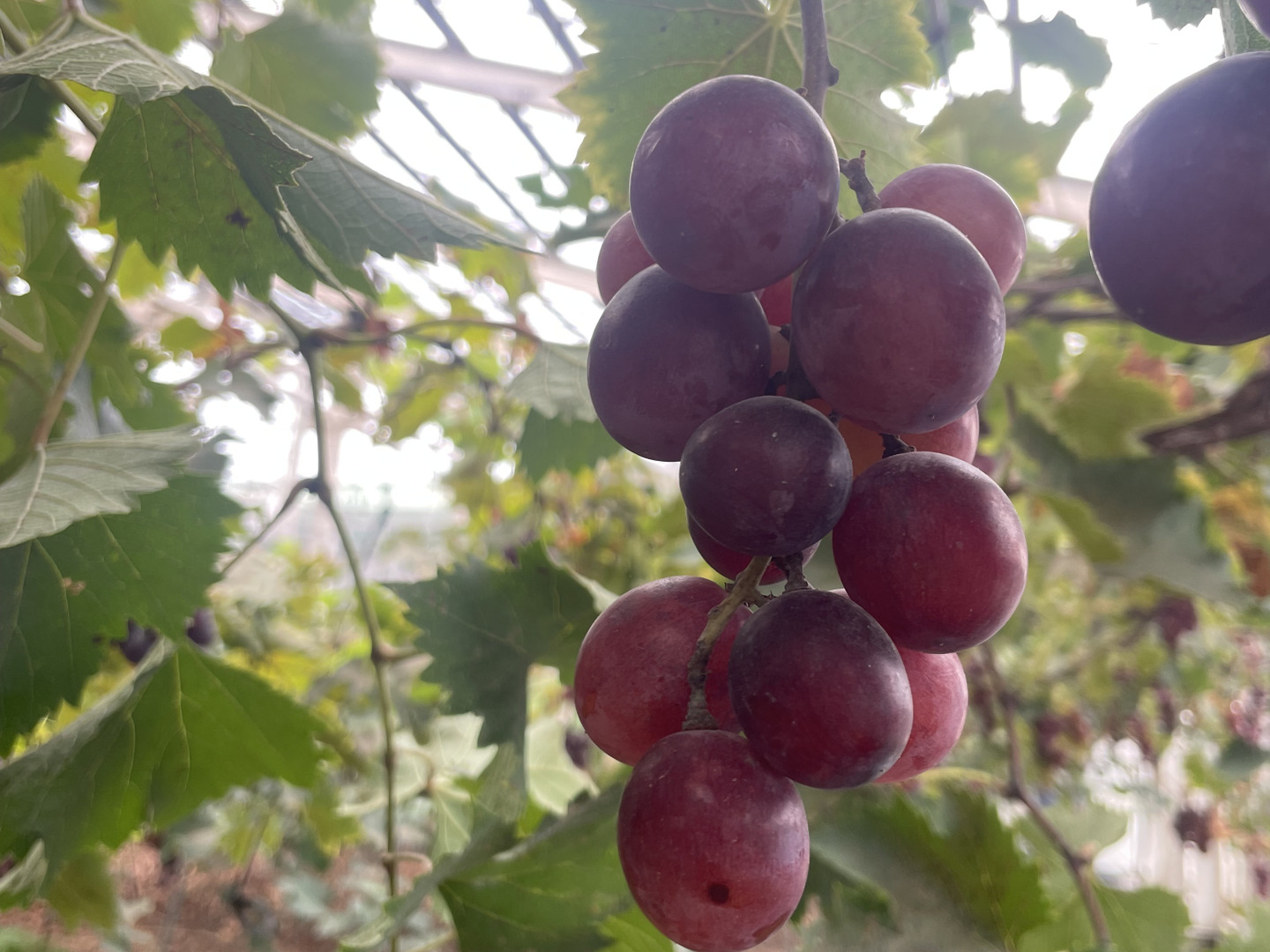 棚の上で完全に熟すまで育ったピオーネです。選りすぐりの粒を総から一粒ずつ切り離してお送りします