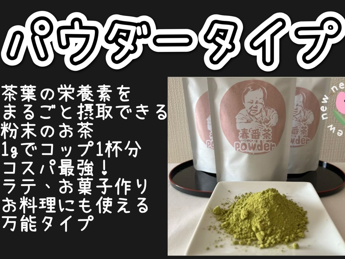 - 粉末なので簡単に茶葉の栄養素を100%摂取出来ます!