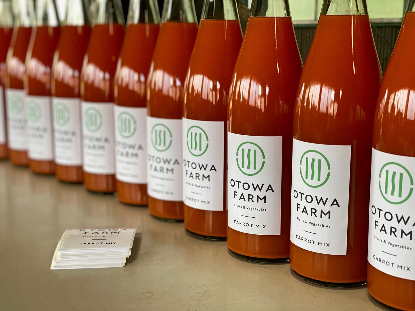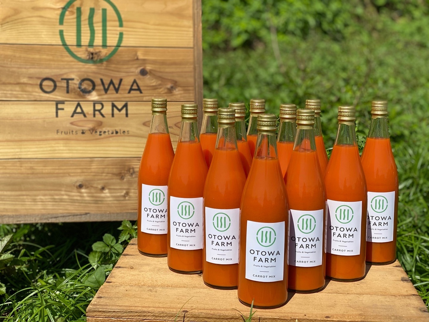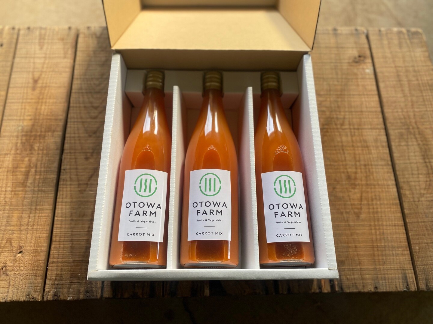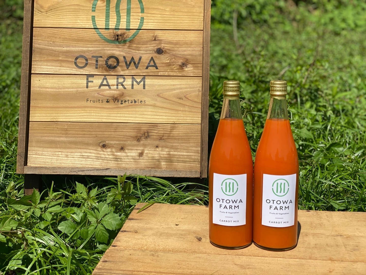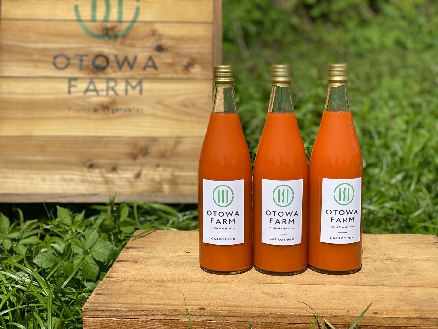 オトワファームで農薬、化学肥料を使用せず栽培した「恋ごころ人参」と長野県産のりんご「ふじ」を併せて加工してもらった「人参ミックスジュース」です!