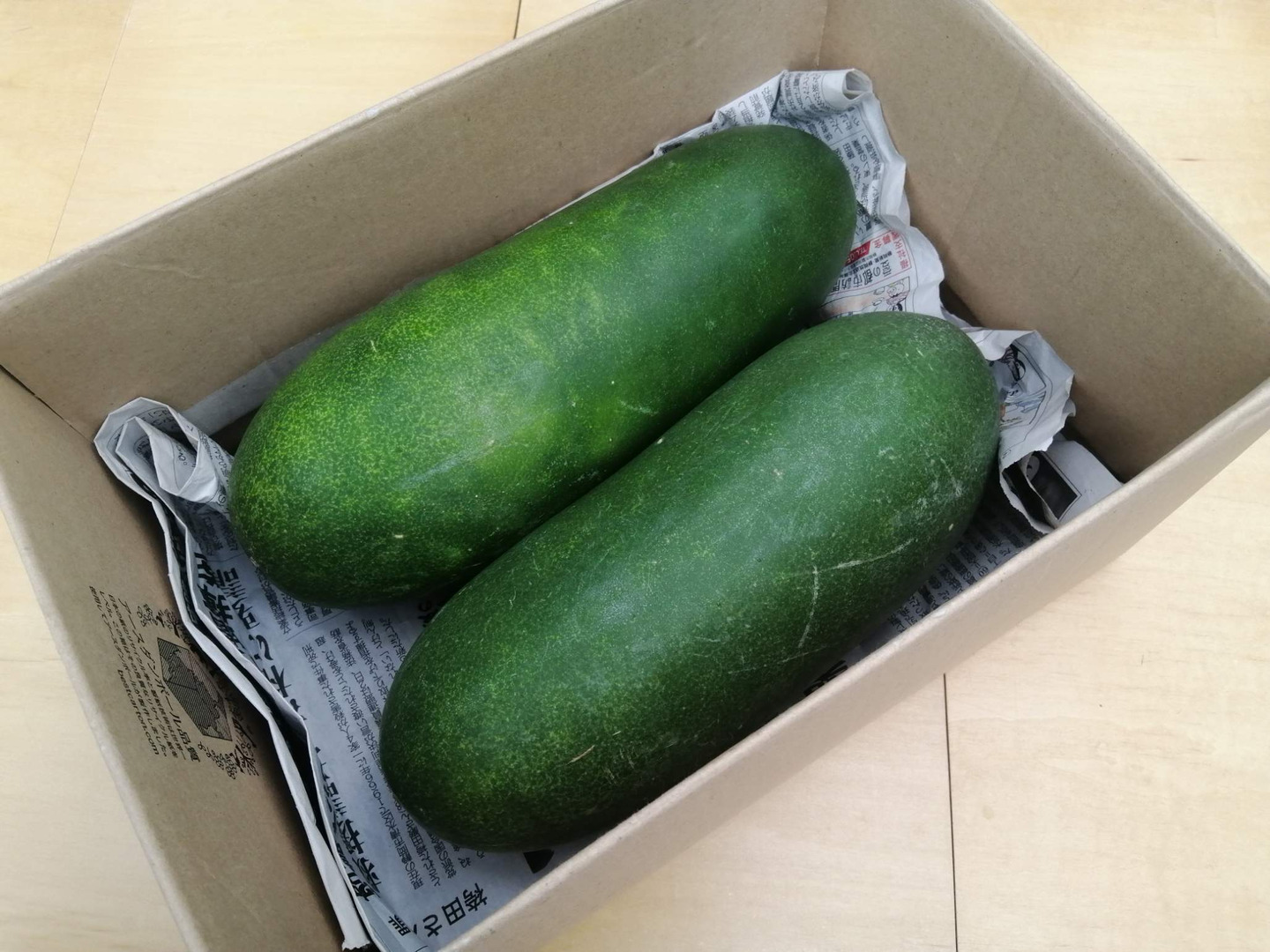 冬瓜(トウガン)2個入り。長円筒形の沖縄冬瓜。