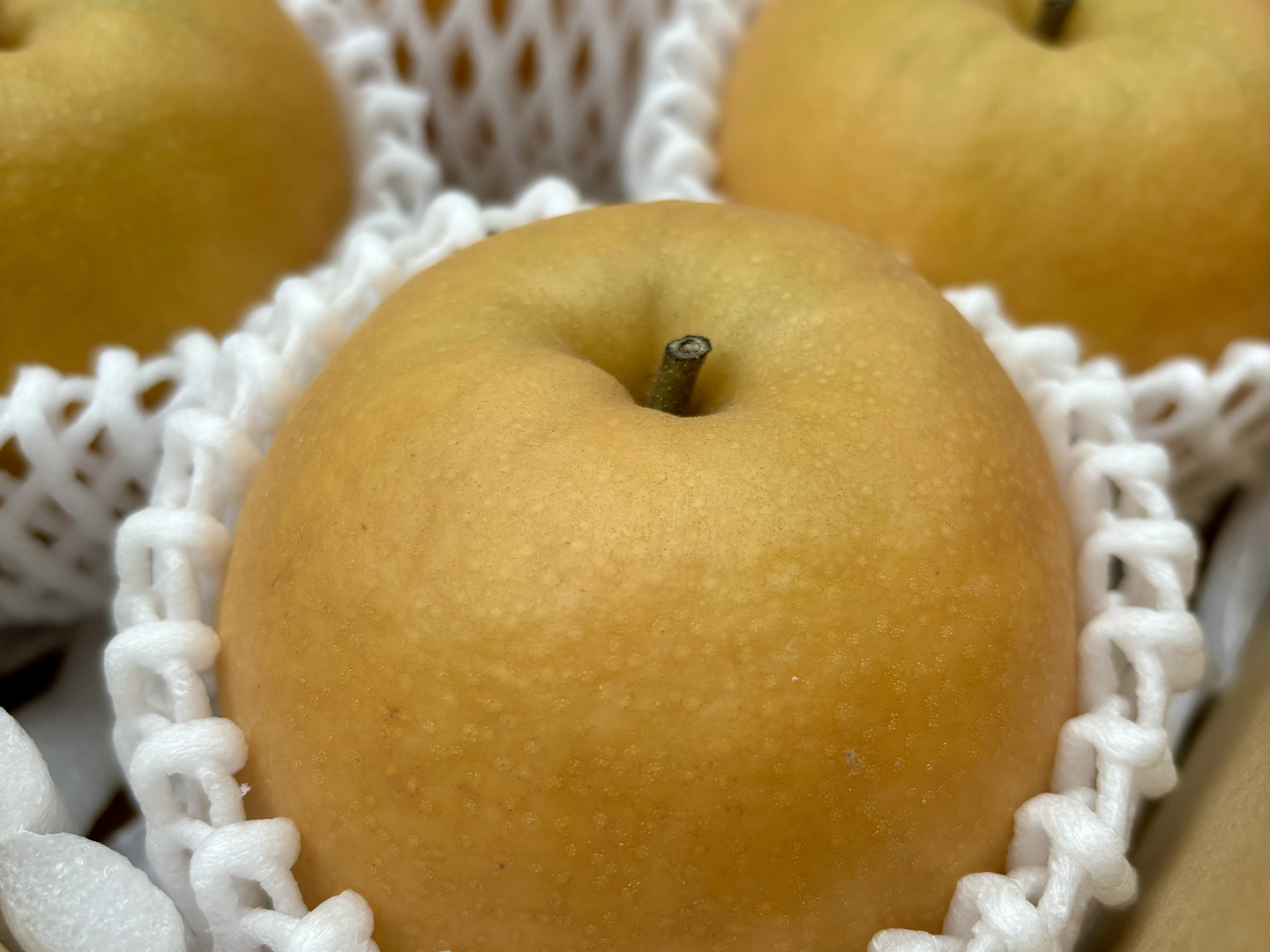 新興梨は貯蔵性が高いため、涼しいところに置いておくと1か月近くもつと言われていますが、生物ですのでできるだけお早めにお召し上がりください。