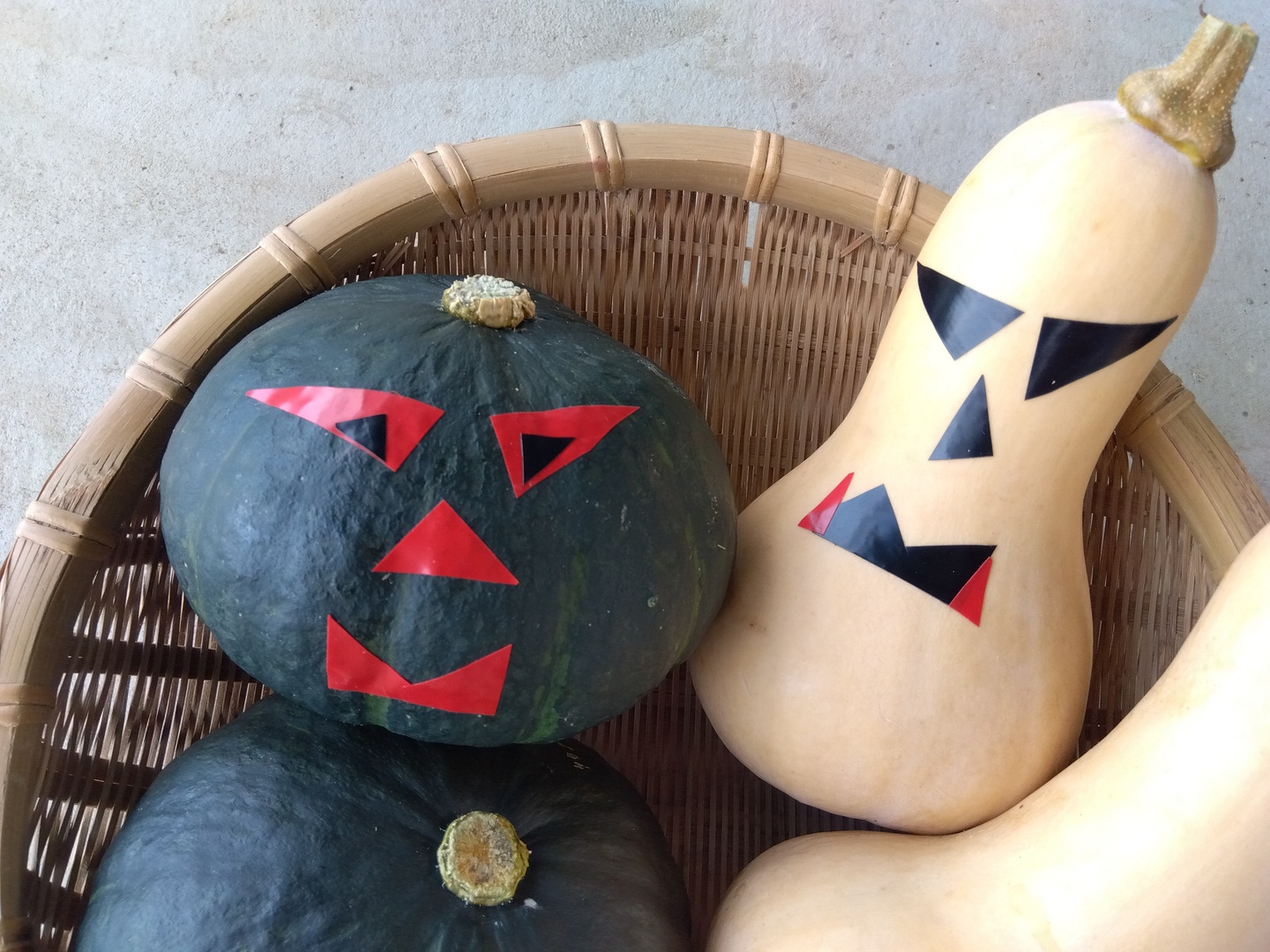 【ハロウィン準備はお済ですか】 田口農園今年のイチオシプレゼンツ。 ハロウィンかぼちゃ (栗かぼちゃ2玉・バターナッツ2玉) 合計約3Kg程度(食べることも出来ます) ディスプレイはご自由に。