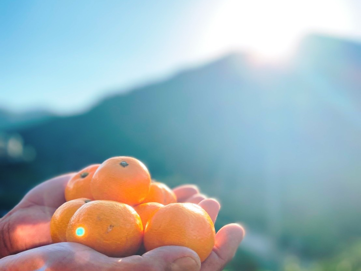 山々に囲まれた自然豊かな場所、西果樹園のみかん畑で実った果実を是非!