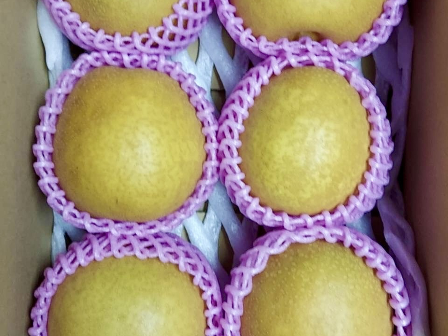 王秋(おうしゅう)梨は、鳥取県を代表する二十世紀梨と中国梨の慈梨、新雪を掛け合わせて品種登録された晩生の赤梨です。