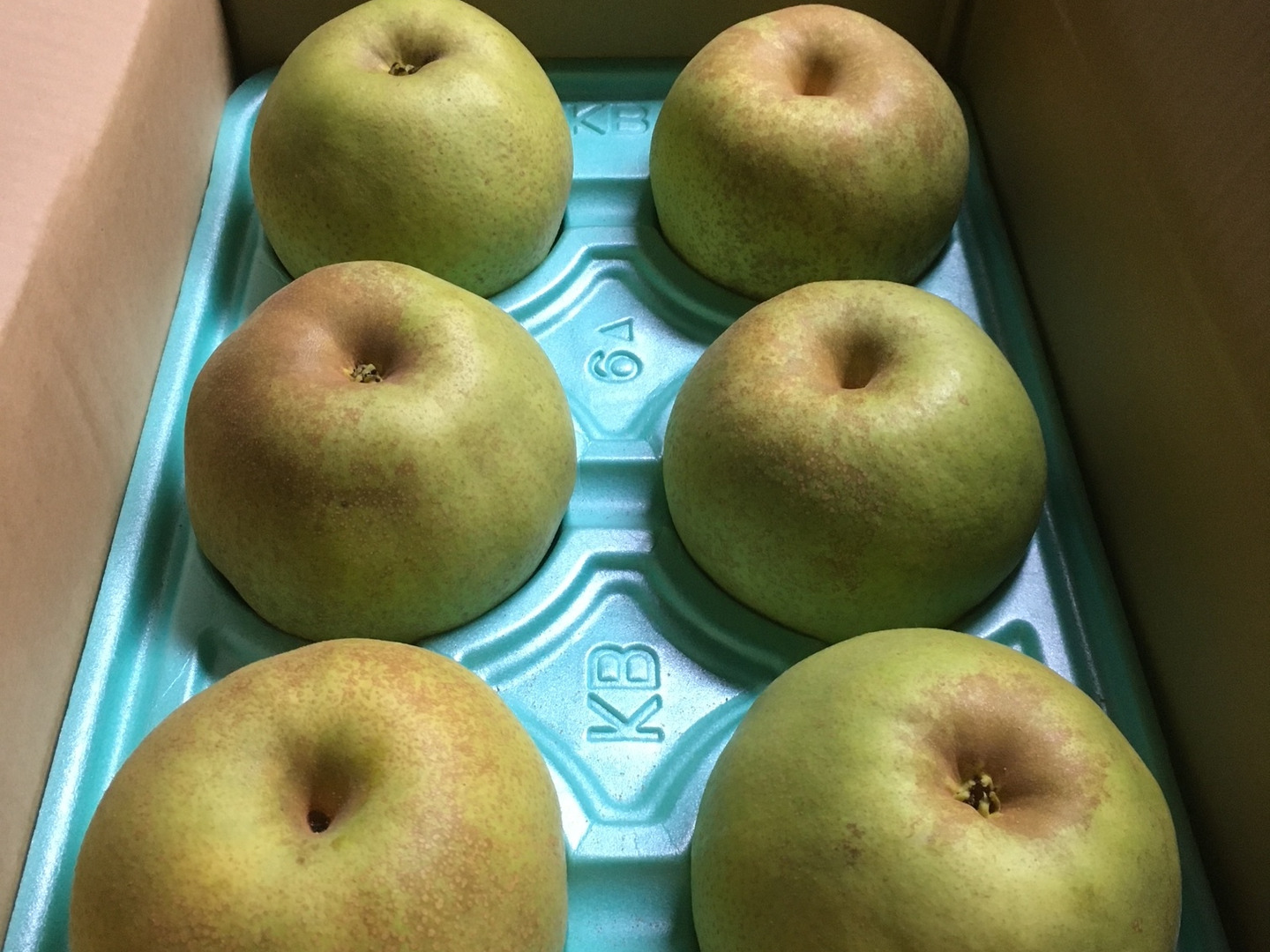 かおり梨は、黄色めでほのかに香り出したら食べ頃です。そうなると日持ちしませんので、冷蔵してお早めにお召し上がり下さい。