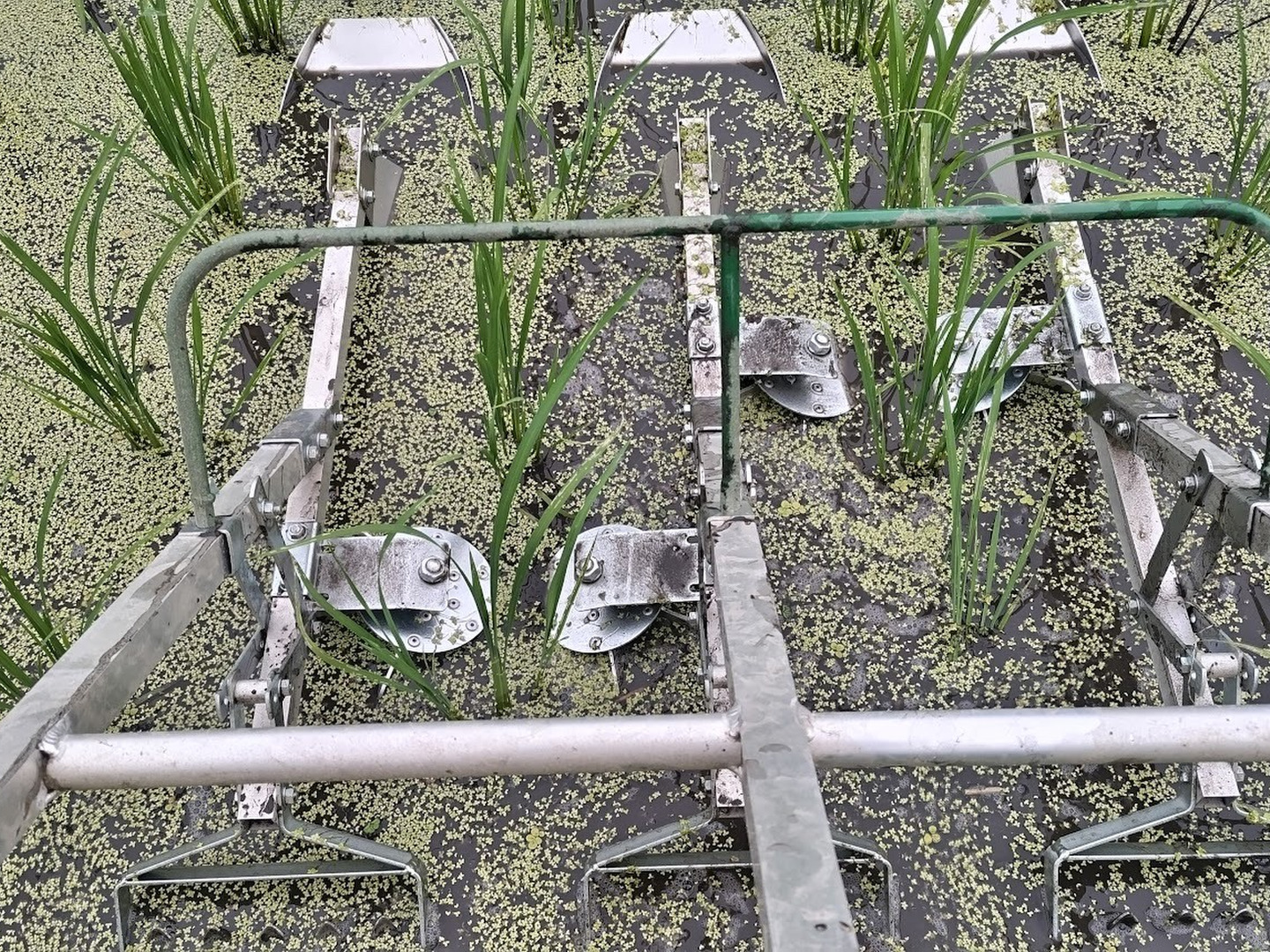 人が稲を育てるために肥料を撒き、畦を塗り、水を溜めた田んぼ。