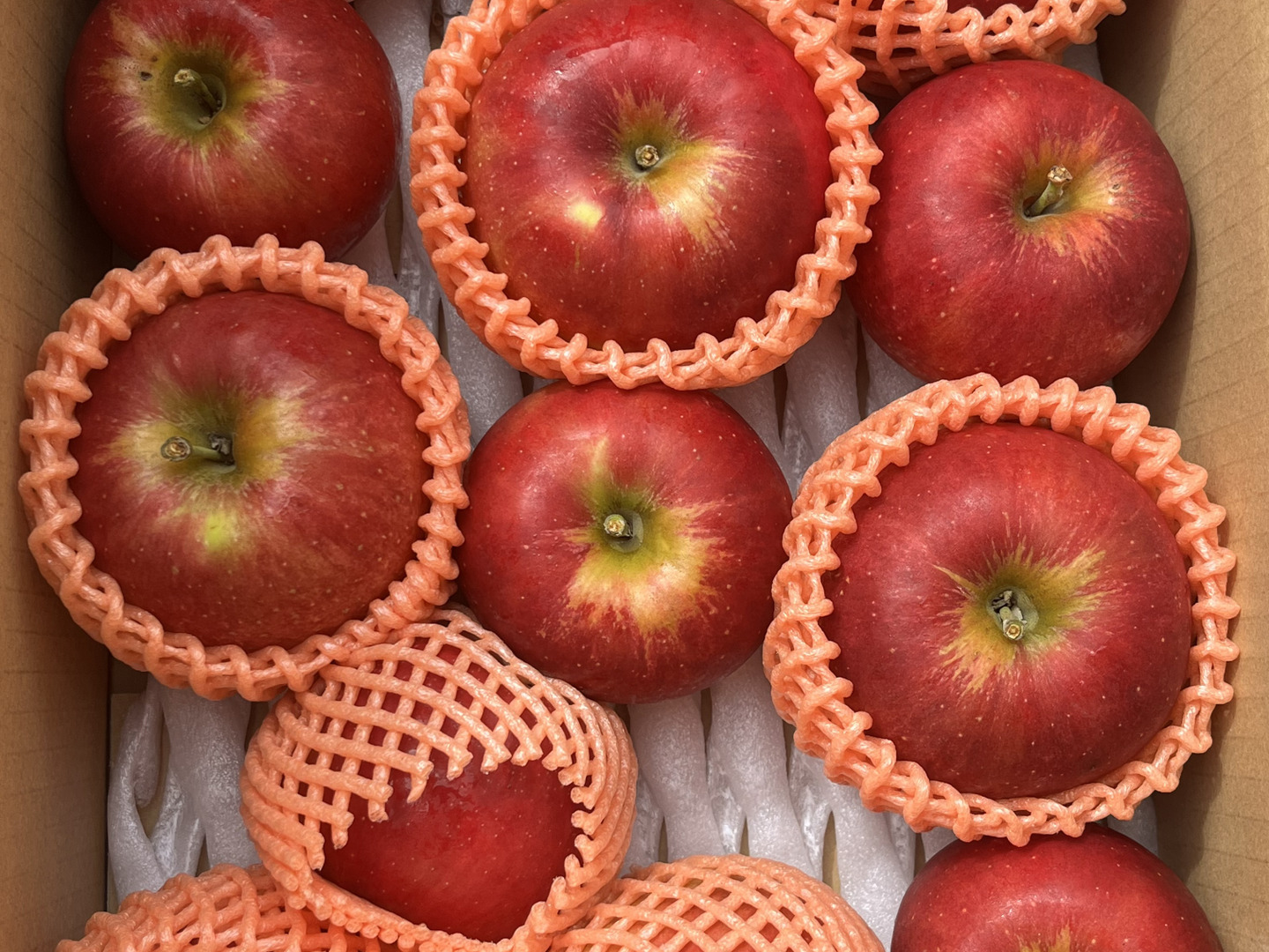 ※なるべくきれいな状態のりんごで荷造りする予定ですが、一部、りんごの表面の枝すれや、色むらや、サビなどがあるりんごなどが入る可能性がございますのでご理解くださいますようお願いします。