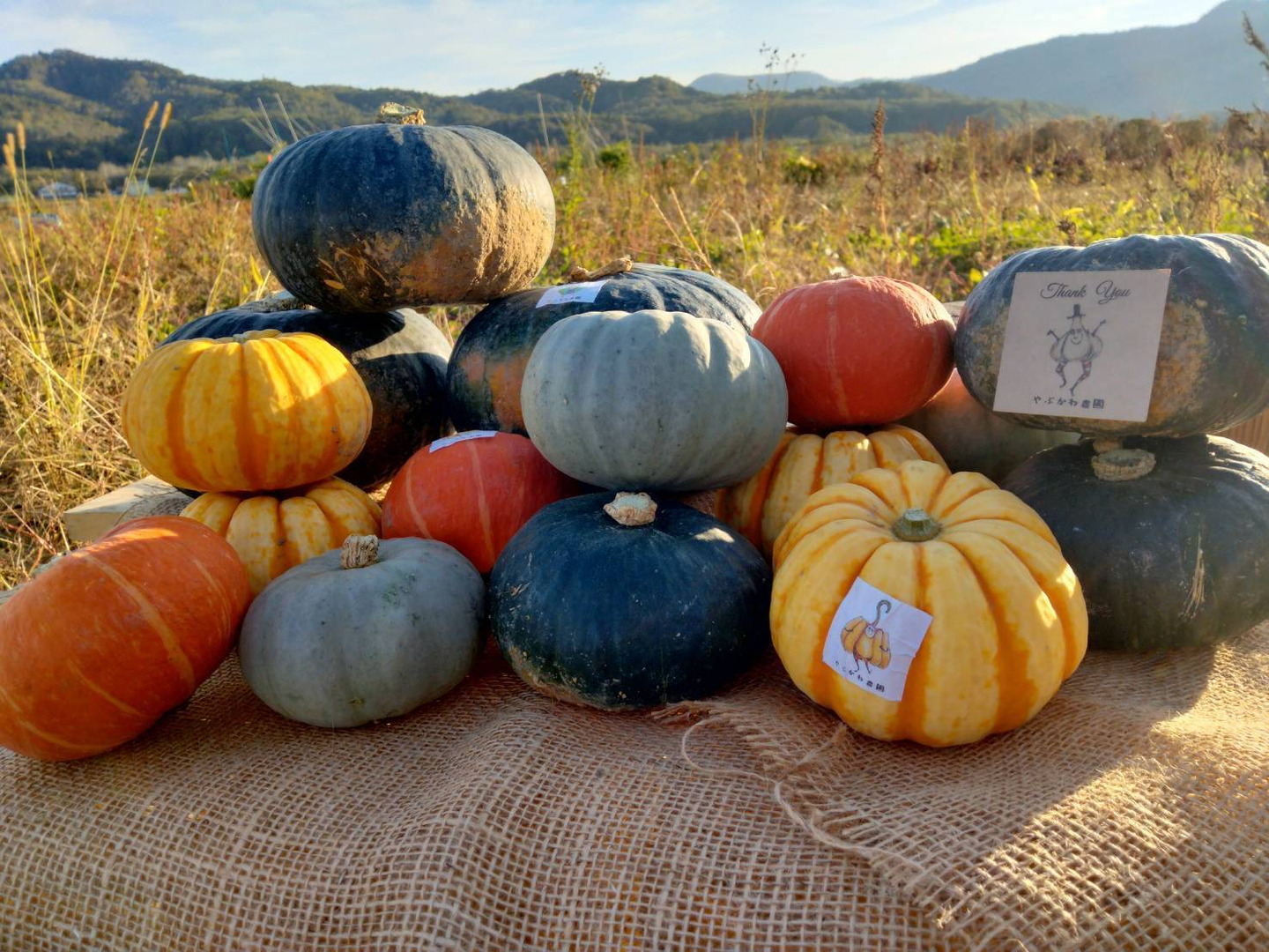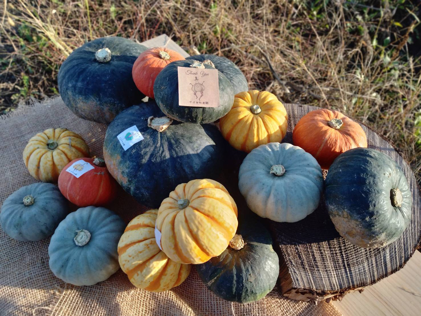 米ぬか、もみ殻、鶏糞を配合した自家製ぼかし肥を作り、糸状菌でかぼちゃを元気に栽培しています。