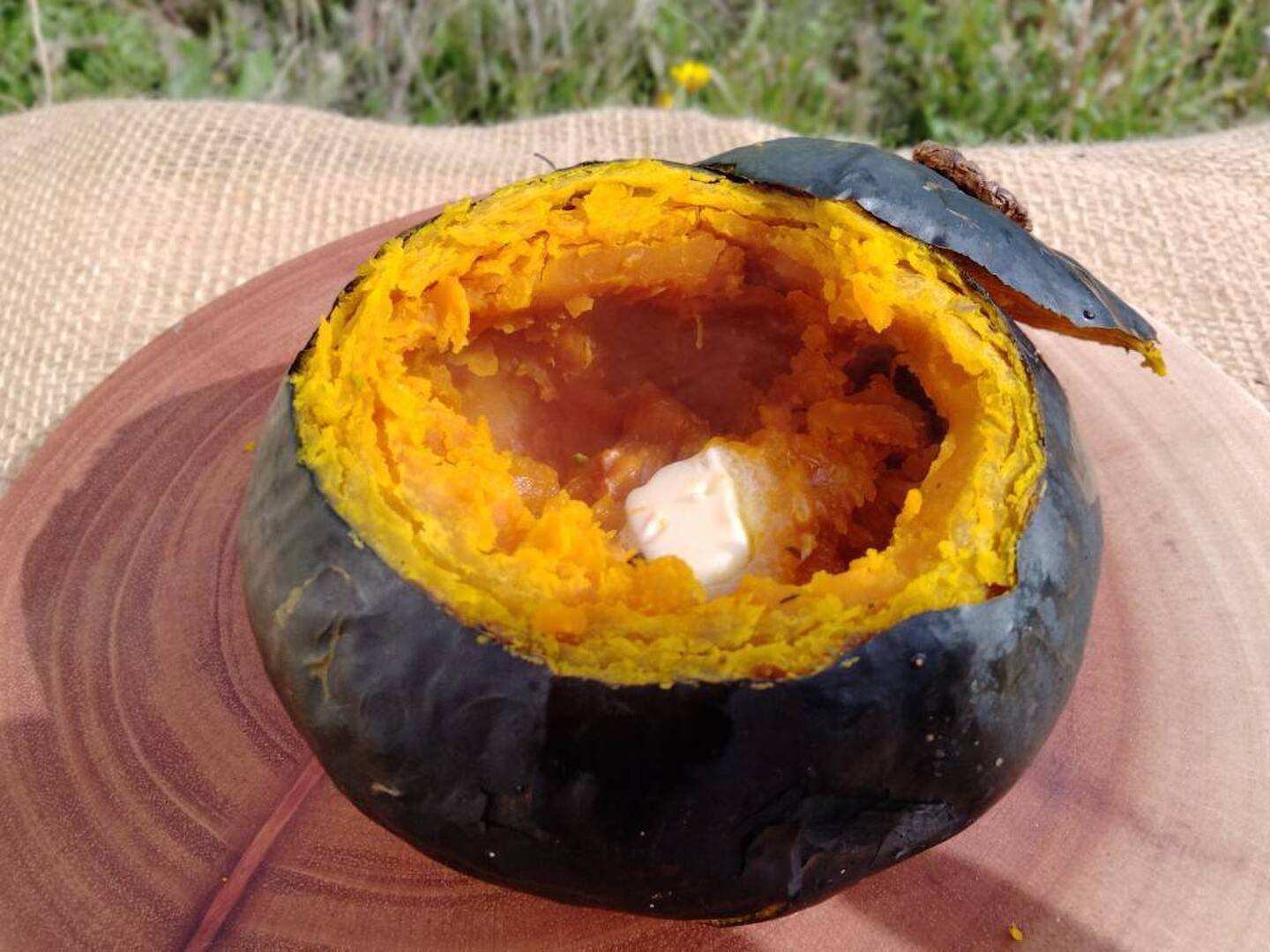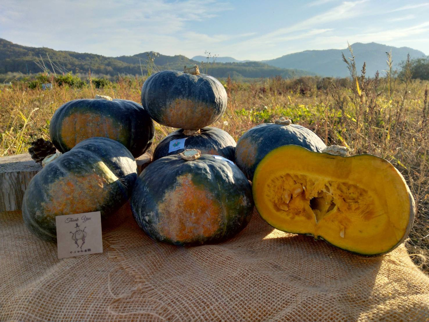 黒い皮が特徴で、濃厚な甘さとホクホク食感です。従来種よりも皮が柔らかく包丁でカットしやすいです。かぼちゃ好きに食べて頂きたい
