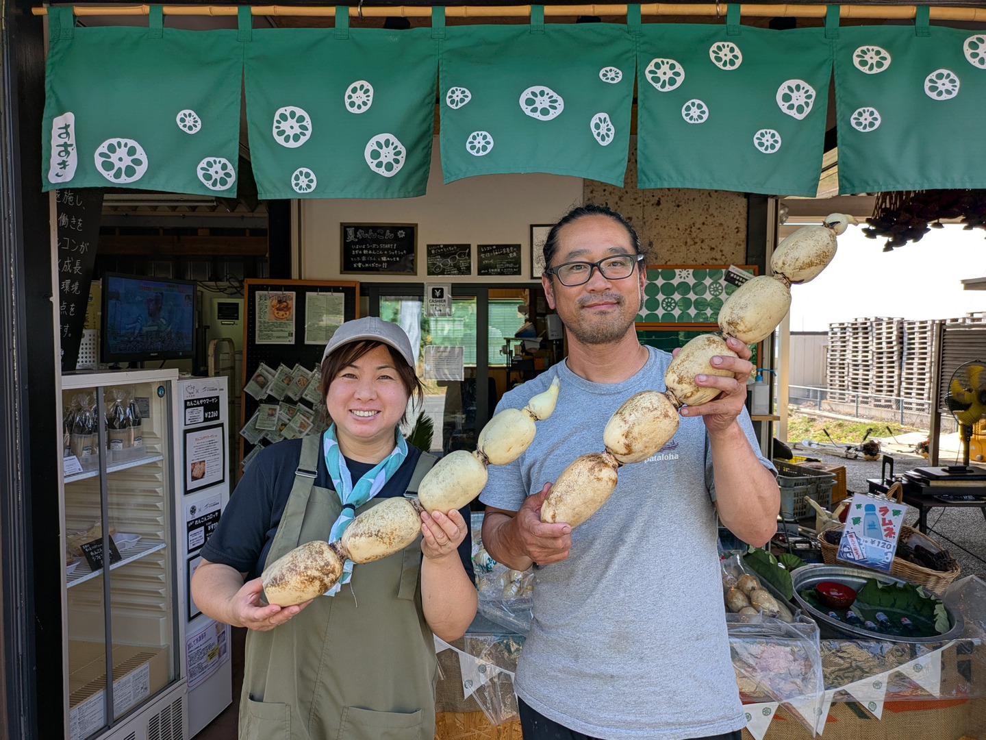 すずき蓮根農園の直売所で一番人気の、中小玉レンコンの袋詰め。