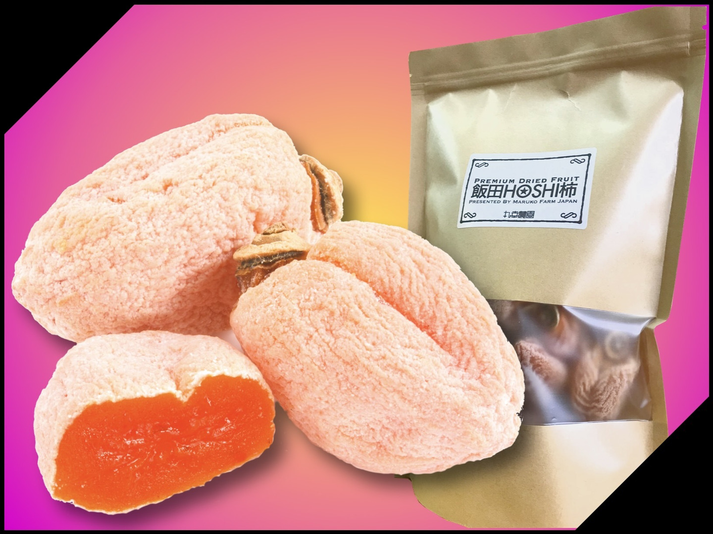 当園の干柿は自然乾燥による製法です。寒暖差の大きい穏やかで豊かな自然と澄んだ空気に育まれ、ブドウ糖の白い結晶で覆われた上品な質感と他にはないしっとりした食感、そして、驚くほど濃厚な甘さをお楽しみ下さい。