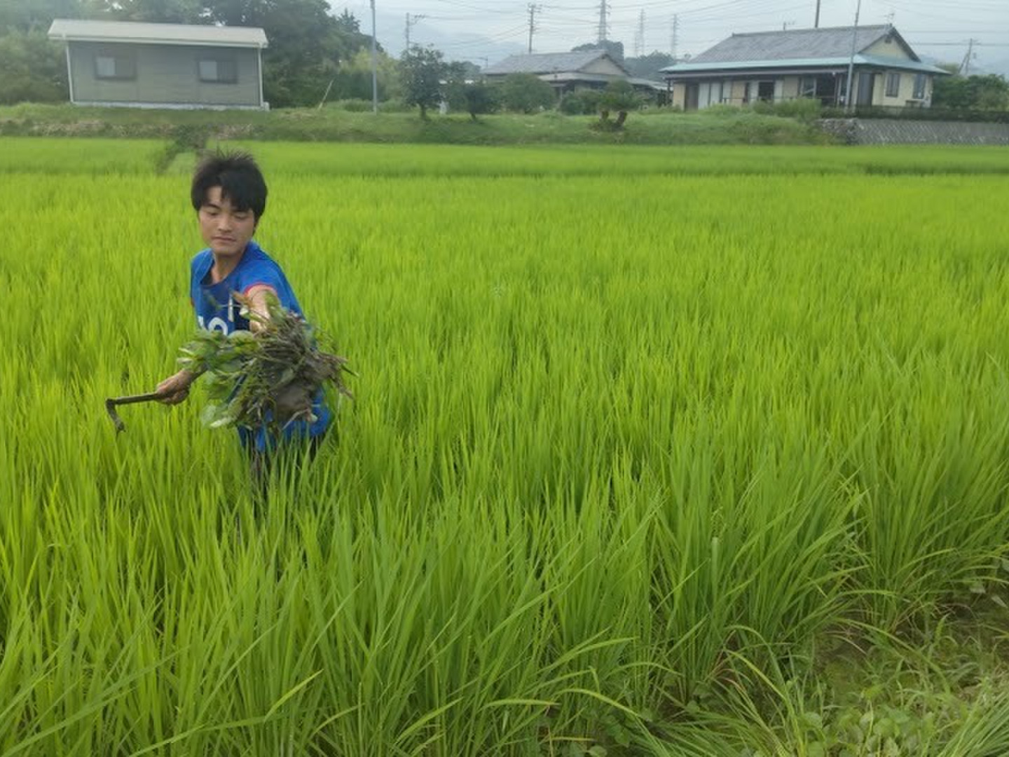 農薬化学肥料不使用、自家生産した発酵鶏糞(ポストハーベスト農薬飼料不使用。抗生剤不使用で育てた鶏)を使い、除草作業はチェーン除草や歩行式水田中耕除草機で元気よく育てました!