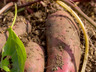 土壌の異なる2つの農園で栽培されたお芋が混在する場合があります(土の色の違いによってわかります)。